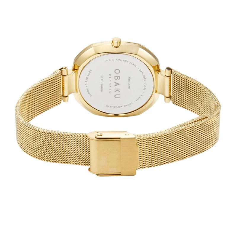 Женские кварцевые часы Obaku — это элегантный и тонкий аксессуар. Корпус восьмиугольной формы диаметром 32 мм выполнен из нержавеющей стали с IP-покрытиемIP-покрытиеМетод ионного напыления. Демонстрирует повышенную устойчивость к истиранию, окислению и химическим веществам. Под воздействием высокого давления и температуры около 1500°C молекулы металла надёжно соединяются с частицами корпуса часов. цвета жёлтого золота. Циферблат чёрного цвета оформлен стрелками и инкрустирован бриллиантом. Циферблат защищён сапфировым стекломСапфировое стеклоПрочный и надёжный материал из кристалла сапфира синтетического происхождения, характеризующийся особой твёрдостью и устойчивостью к царапинам и повреждениям.. Часы оснащены стальным браслетом миланского плетения с IP-покрытиемIP-покрытиеМетод ионного напыления. Демонстрирует повышенную устойчивость к истиранию, окислению и химическим веществам. Под воздействием высокого давления и температуры около 1500°C молекулы металла надёжно соединяются с частицами корпуса часов. на раскладной застёжкеРаскладная застёжкаТакой тип застёжки используется только на браслетах из металла. Она никогда не раскрывается полностью, происходит разделение на 2 и более частей. Раскладывающая застёжка снизит вероятность потери часов к минимуму.. Водонепроницаемость 30 м позволяет использовать часы в повседневных условиях. Идеальный выбор для тех, кто ценит скандинавский дизайн и безупречный стиль.