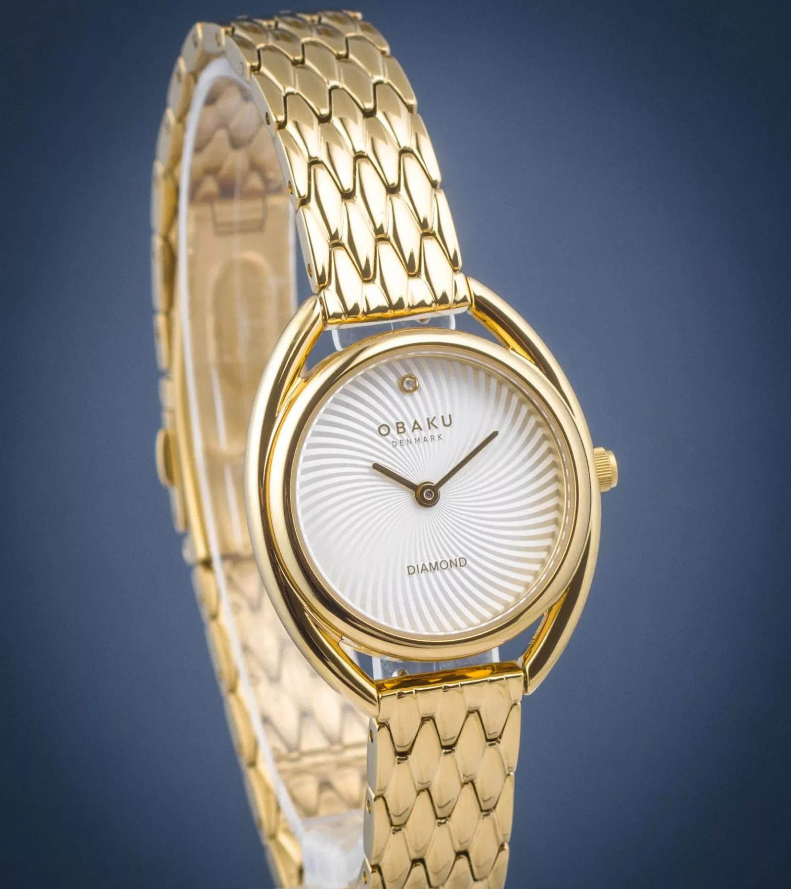 Женские наручные кварцевые часы с минеральным стекломМинеральное стеклоМинеральное стекло представляет собой искусственно выращенный минерал кварца. Такое стекло отличается особой устойчивостью к повреждениям и царапинам. Уступает по некоторым качествам сапфировому стеклу. Obaku Diamond V286LXGISG, кварцевый механизм с высокой точностью. Класс водозащиты: 30 метров, позволит защитить корпус от случайных брызг или капель дождя. Корпус часов изготовлен из стали с IP-покрытиемIP-покрытиеМетод ионного напыления. Демонстрирует повышенную устойчивость к истиранию, окислению и химическим веществам. Под воздействием высокого давления и температуры около 1500°C молекулы металла надёжно соединяются с частицами корпуса часов.. Стальной браслет на раскладной застёжкеРаскладная застёжкаТакой тип застёжки используется только на браслетах из металла. Она никогда не раскрывается полностью, происходит разделение на 2 и более частей. Раскладывающая застёжка снизит вероятность потери часов к минимуму. с IP-покрытиемIP-покрытиеМетод ионного напыления. Демонстрирует повышенную устойчивость к истиранию, окислению и химическим веществам. Под воздействием высокого давления и температуры около 1500°C молекулы металла надёжно соединяются с частицами корпуса часов.. Белый циферблат декорирован бриллиантом.