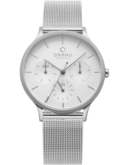Женские часы Obaku - в изысканном и утонченном стиле  всегда современны и неотразимы.Кварцевые часы. Корпус выполнен из нержавеющей стали. Белый циферблат. Центральная секундная стрелка. Индикация даты и дня недели. 12-24-х часовой формат. Стальной браслет миланского плетения.
