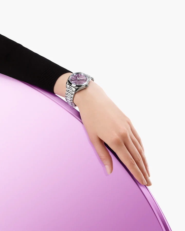 Omega Seamaster Aqua Terra выполнены в симметричном корпусе из полированной нержавеющей стали с завинчивающейся задней крышкой, украшенной волновым узором. Циферблат изготовлен из латуни и обработан методом солнечной шлифовки от центра к краям. Циферблат дополнен окошком даты на 6 часах, стрелками и метками из 18K белого золота с алмазной полировкой для высокой контрастности и читаемости. Логотип OMEGA также выполнен в этом же материале. Калибр Omega 8800 сертифицирован как Master Chronometer — гарантия высочайшей точности и устойчивости к магнитным полям. Запас хода составляет 55 часов. Защиту циферблата обеспечивает сапфировое стеклоСапфировое стеклоПрочный и надёжный материал из кристалла сапфира синтетического происхождения, характеризующийся особой твёрдостью и устойчивостью к царапинам и повреждениям. с антибликовым покрытиемАнтибликовое покрытиеСлой оксида металла в 0,13-0,3 микрон, благодаря которому стекло часов не бликует и не отражает свет. Антибликовое покрытие уменьшает отражение света в 10 раз, обеспечивая отличную читаемость показателей циферблата. с обеих сторон. Водозащита позволяет использовать часы в воде без риска повреждения. Часы установлены на браслет со скруглёнными звеньями и раскладной застёжкойРаскладная застёжкаТакой тип застёжки используется только на браслетах из металла. Она никогда не раскрывается полностью, происходит разделение на 2 и более частей. Раскладывающая застёжка снизит вероятность потери часов к минимуму.. Это сочетание премиального качества, технологичности и классического дизайна.