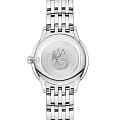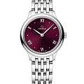 Коллекция OMEGA De Ville Prestige, сохраняющая свою актуальность с 1994 года, вновь предстает в третьем поколении. Эти часы продолжают быть символом классического дизайна и утонченной элегантности. Модели, которые привлекают внимание разнообразием узоров, отделок и цветов, идеально подходят для людей с различными стилями жизни и характерами. Часы в корпусе диаметром 27,5 мм из нержавеющей стали имеют циферблат с PVD-покрытиемPVDУльтратонкое покрытие наносится в технике вакуумного напыления, сочетает в себе нитрид титана особой прочности со слоем золота или оксида хрома. Несёт в себе декоративную или защитную функцию. фиолетово-бордового цвета и радиальным сатинированием. На циферблате расположены стрелки с родиевым покрытием, а также чередующиеся римские цифры и индексы в форме кабошона. Изделие с лаконичным дизайном дополнено задней крышкой, украшенной рельефным медальоном с изображением бога времени Хроноса. Часы представлены с браслетом из нержавеющей стали. Модель оснащена кварцевым механизмом OMEGA 4061, который обеспечивает срок службы элемента питания не менее 48 месяцев.