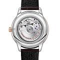 270-градусный индикатор запаса хода расположен в положении "6 часов". Он имеет двухслойную конструкцию в форме полумесяца, состоящую из нижней пластины с изящной контрастной отделкой, выполненной в одной цветовой гамме, и верхней пластины с 4-я секторальными прорезями. Изделие с лаконичным дизайном дополнено окошком указателя даты в положении «6 часов», счетчиком малой секундной стрелки в положении «9 часов» и минутной шкалой в стиле «железная дорога» на внешнем секторе. Часы с сертификатом Master Chronometer представлены с кожаным ремешком коричневого цвета. Модель оснащена калибром OMEGA Master Co-Axial 8810, который виден сквозь устойчивое к царапинам сапфировое стеклоСапфировое стеклоПрочный и надёжный материал из кристалла сапфира синтетического происхождения, характеризующийся особой твёрдостью и устойчивостью к царапинам и повреждениям. задней крышки корпуса.