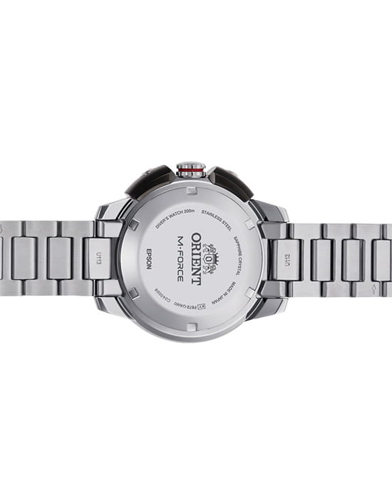 Мужские механические часы с автоподзаводом Orient M-Force RA-AC0L01B представляют собой идеальное сочетание стиля, функциональности и надежности. Эти часы созданы специально для любителей активного отдыха и водных видов спорта. Корпус и браслет часов изготовлены из высококачественной нержавеющей стали, которая обладает повышенной стойкостью к механическим повреждениям и коррозии. Циферблат защищен сапфировым стекломСапфировое стеклоПрочный и надёжный материал из кристалла сапфира синтетического происхождения, характеризующийся особой твёрдостью и устойчивостью к царапинам и повреждениям., известным своей исключительной прочностью и высокой прозрачностью. Это стекло имеет специальное антибликовое покрытие, благодаря чему циферблат остается четким и легко читаемым даже при ярком солнечном свете. БезельБезельВнешний ободок, закрепляющий стекло. В спортивных часах так называется поворотное кольцо с делениями на циферблате, выполняет роль таймера – замеряет отрезки времени на шкале. Неподвижный безель – элемент декора. Однонаправленно вращающийся безель на дайверских часах позволяет фиксировать моменты погружения и выныривания на поверхность. часов выполнен с использованием IP-покрытияIP-покрытиеМетод ионного напыления. Демонстрирует повышенную устойчивость к истиранию, окислению и химическим веществам. Под воздействием высокого давления и температуры около 1500°C молекулы металла надёжно соединяются с частицами корпуса часов., что значительно увеличивает его износостойкость и защищает от царапин. Он плавно вращается в одном направлении, обеспечивая точность измерения времени погружения.На циферблате расположено окошко дня недели и даты, находящееся в положении 3 часа. Этот элемент придает часам дополнительную функциональность и удобство в использовании. Механизм часов оснащен 22 камнями, что обеспечивает высокую точность работы и долговечность устройства. Частота колебаний механизма составляет 21600 полуколебаний в час, а запас хода достигает 40 часов, что позволяет часам работать без необходимости ежедневного завода. Для обеспечения отличной видимости в темное время суток стрелки и метки покрыты люминесцентным покрытиемЛюминесцентное покрытиеПозволяет считывать показания времени в темноте. Производители наносят на стрелки, часовые индексы, безель или поверхность циферблата светонакопительный состав, дающий холодное свечение., которое светится в темноте, облегчая считывание показаний. Класс водонепроницаемости этих часов составляет 200 метров, что делает их подходящими для плавания, дайвинга и других водных видов спорта. Браслет часов изготовлен из нержавеющей стали и оснащен раскладной застежкойРаскладная застёжкаТакой тип застёжки используется только на браслетах из металла. Она никогда не раскрывается полностью, происходит разделение на 2 и более частей. Раскладывающая застёжка снизит вероятность потери часов к минимуму., которая обеспечивает надежную фиксацию на запястье и удобство использования. Эта модель часов станет надежным спутником в любых приключениях и подчеркнет ваш стиль и любовь к активным видам отдыха.