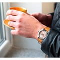 Циферблат часов выполнен в оранжевом цвете, что придаёт им яркий и современный вид. Индексы и стрелки покрыты Люминесцентным покрытиемЛюминесцентное покрытиеПозволяет считывать показания времени в темноте. Производители наносят на стрелки, часовые индексы, безель или поверхность циферблата светонакопительный состав, дающий холодное свечение., что обеспечивает хорошую читаемость в темноте.