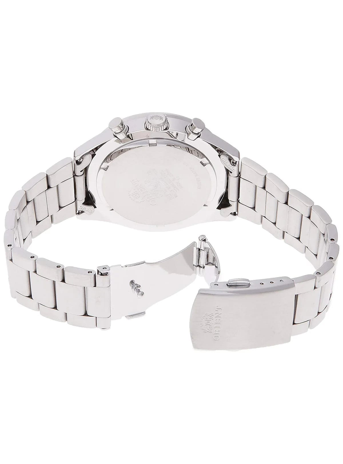 Мужские кварцевые часы-хронографХронографФункция позволяет измерять отрезки времени с особой точностью: часы, минуты, секунды. Верным признаком хронографа является наличие на циферблате 3 дополнительных окошек-счётчиков. Orient Sport WV0021TX. Корпус часов изготовлен из нержавеющей стали. Минеральное стеклоМинеральное стеклоМинеральное стекло представляет собой искусственно выращенный минерал кварца. Такое стекло отличается особой устойчивостью к повреждениям и царапинам. Уступает по некоторым качествам сапфировому стеклу. устойчивое к появлению царапин, обладающее высокой прозрачностью. Стальной браслет на раскладной застёжкеРаскладная застёжкаТакой тип застёжки используется только на браслетах из металла. Она никогда не раскрывается полностью, происходит разделение на 2 и более частей. Раскладывающая застёжка снизит вероятность потери часов к минимуму.. Водозащита: 100 метров, позволит плавать, нырять и заниматься другими водными видами спорта. Стрелки и метки с люминесцентным покрытиемЛюминесцентное покрытиеПозволяет считывать показания времени в темноте. Производители наносят на стрелки, часовые индексы, безель или поверхность циферблата светонакопительный состав, дающий холодное свечение..