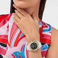 Элегантные керамические часики - то, что придется по душе любой моднице. Женские часы с круглым стальным корпусом. Циферблат с узором в виде сот выполнен по технологии Sunray (солнечные лучи). Метки в виде штрихов, инкрустированные цветными кристаллами. Заводная головка с защитой. Стальной безельБезельВнешний ободок, закрепляющий стекло. В спортивных часах так называется поворотное кольцо с делениями на циферблате, выполняет роль таймера – замеряет отрезки времени на шкале. Неподвижный безель – элемент декора. Однонаправленно вращающийся безель на дайверских часах позволяет фиксировать моменты погружения и выныривания на поверхность. украшен цветными кристаллами. Стрелки и метки с люминесцентным покрытиемЛюминесцентное покрытиеПозволяет считывать показания времени в темноте. Производители наносят на стрелки, часовые индексы, безель или поверхность циферблата светонакопительный состав, дающий холодное свечение..