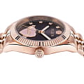 Женские кварцевые часы Philipp Plein Plein Valentine PW2BA1025 – дерзкое заявление любви к роскоши и бунтарскому стилю. Диаметр круглого корпуса из прочной нержавеющей стали с PVD-покрытиемPVDУльтратонкое покрытие наносится в технике вакуумного напыления, сочетает в себе нитрид титана особой прочности со слоем золота или оксида хрома. Несёт в себе декоративную или защитную функцию. равен 38 мм. Минеральное стеклоМинеральное стеклоМинеральное стекло представляет собой искусственно выращенный минерал кварца. Такое стекло отличается особой устойчивостью к повреждениям и царапинам. Уступает по некоторым качествам сапфировому стеклу. защищает циферблат от царапин. Стальной браслет на застёжке «бабочка» с кнопкамиЗастёжка "бабочка"Такой вид застёжки дополняется предохранителями, помогающими избежать случайного раскрытия браслета. Обладают изящным исполнением. обеспечивает надёжную фиксацию и комфортное ношение. Люминесцентное покрытиеЛюминесцентное покрытиеПозволяет считывать показания времени в темноте. Производители наносят на стрелки, часовые индексы, безель или поверхность циферблата светонакопительный состав, дающий холодное свечение. стрелок и меток позволит следить за временем даже в полной темноте. Яркий дизайн с узнаваемым логотипом Plein и смелыми акцентами не оставит вас незамеченным. Идеальный аксессуар для тех, кто ценит индивидуальность и не боится выделяться из толпы.