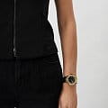 Philipp Plein Plein Lady Royal PWBDA0424 — женские часы, сочетающие элегантный дизайн и функциональность. Корпус диаметром 39 мм выполнен из нержавеющей стали с золотистым PVD-покрытиемPVDУльтратонкое покрытие наносится в технике вакуумного напыления, сочетает в себе нитрид титана особой прочности со слоем золота или оксида хрома. Несёт в себе декоративную или защитную функцию., что придаёт часам изысканный вид. Минеральное стеклоМинеральное стеклоМинеральное стекло представляет собой искусственно выращенный минерал кварца. Такое стекло отличается особой устойчивостью к повреждениям и царапинам. Уступает по некоторым качествам сапфировому стеклу. защищает циферблат от царапин и повреждений, сохраняя его безупречный внешний вид. Циферблат инкрустирован кристаллами. Чёрный циферблат с шестиугольной текстурой подчёркивает уникальный стиль бренда. Часы оснащены кварцевым механизмом, обеспечивающим точность хода. Водозащита до 5 ATM (50 метров) делает их подходящими для повседневного использования. Ремешок из чёрного силикона гарантирует комфорт при ношении, а классическая застёжка обеспечивает надёжную фиксацию. Ширина ремешка 16 мм гармонично сочетается с размером корпуса, завершая смелый и современный образ.