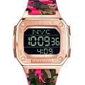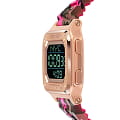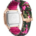 Электронные унисекс часы с секундомеромСекундомерСекундоме́р — прибор, способный измерять интервалы времени с точностью до долей секунды. Philipp Plein Hyper Shock PWHAA1622, электронный механизм с высокой точностью. Класс водозащиты: 50 метров, позволит защитить корпус от случайных брызг или капель дождя. Прямоугольный корпус выполнен из нержавеющей стали с IP-покрытиемIP-покрытиеМетод ионного напыления. Демонстрирует повышенную устойчивость к истиранию, окислению и химическим веществам. Под воздействием высокого давления и температуры около 1500°C молекулы металла надёжно соединяются с частицами корпуса часов. цвета розовое золото. Силиконовый ремешок цвета камуфляж (розово-зеленый) шириной 22 мм, стандартная застежка.