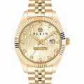 Philipp Plein Date Superlative Gent PWMFA0525 - это дерзкие и бескомпромиссные часы, воплощающие бунтарский дух бренда. Диаметр круглого корпуса из прочной нержавеющей стали с PVD-покрытиемPVDУльтратонкое покрытие наносится в технике вакуумного напыления, сочетает в себе нитрид титана особой прочности со слоем золота или оксида хрома. Несёт в себе декоративную или защитную функцию. равен 41 мм. Стальной браслет на застёжке «бабочка» с кнопкамиЗастёжка "бабочка"Такой вид застёжки дополняется предохранителями, помогающими избежать случайного раскрытия браслета. Обладают изящным исполнением. обеспечивает надёжную фиксацию и комфортное ношение. Метки в виде кристаллов Preciosa. Минеральное стеклоМинеральное стеклоМинеральное стекло представляет собой искусственно выращенный минерал кварца. Такое стекло отличается особой устойчивостью к повреждениям и царапинам. Уступает по некоторым качествам сапфировому стеклу. защищает циферблат от царапин. Люминесцентное покрытиеЛюминесцентное покрытиеПозволяет считывать показания времени в темноте. Производители наносят на стрелки, часовые индексы, безель или поверхность циферблата светонакопительный состав, дающий холодное свечение. стрелок и меток позволит следить за временем даже в полной темноте. Граненая заводная головка. Влагозащита: 50 метров, позволит защитить корпус от случайных брызг или капель дождя. Идеальный аксессуар для тех, кто ценит индивидуальность и не боится выделяться из толпы.