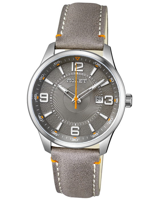 Poljot 2115.471325 — стильные кварцевые часы, сочетающие современную энергию и традиционное качество российского часового производства. Корпус из нержавеющей стали надёжно защищает кварцевый механизм, обеспечивающий плавный и точный ход. Циферблат украшен гильошированным узором и крупными арабскими цифрами, подчёркивающими отличную читаемость. Акценты придают модели динамичность, а стрелки с люминесцентным покрытиемЛюминесцентное покрытиеПозволяет считывать показания времени в темноте. Производители наносят на стрелки, часовые индексы, безель или поверхность циферблата светонакопительный состав, дающий холодное свечение. позволяют легко считывать время в темноте. Окно даты на позиции «3 часов» добавляет функциональности, сохраняя гармонию дизайна. Прочное минеральное стеклоМинеральное стеклоМинеральное стекло представляет собой искусственно выращенный минерал кварца. Такое стекло отличается особой устойчивостью к повреждениям и царапинам. Уступает по некоторым качествам сапфировому стеклу. защищает циферблат от царапин, а ремешок из натуральной кожи с декоративной прострочкой обеспечивает комфорт и изысканный вид. Poljot — выбор уверенного мужчины, ценящего надёжность механики, лаконичность и энергичный характер деталей.