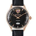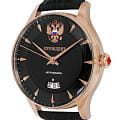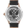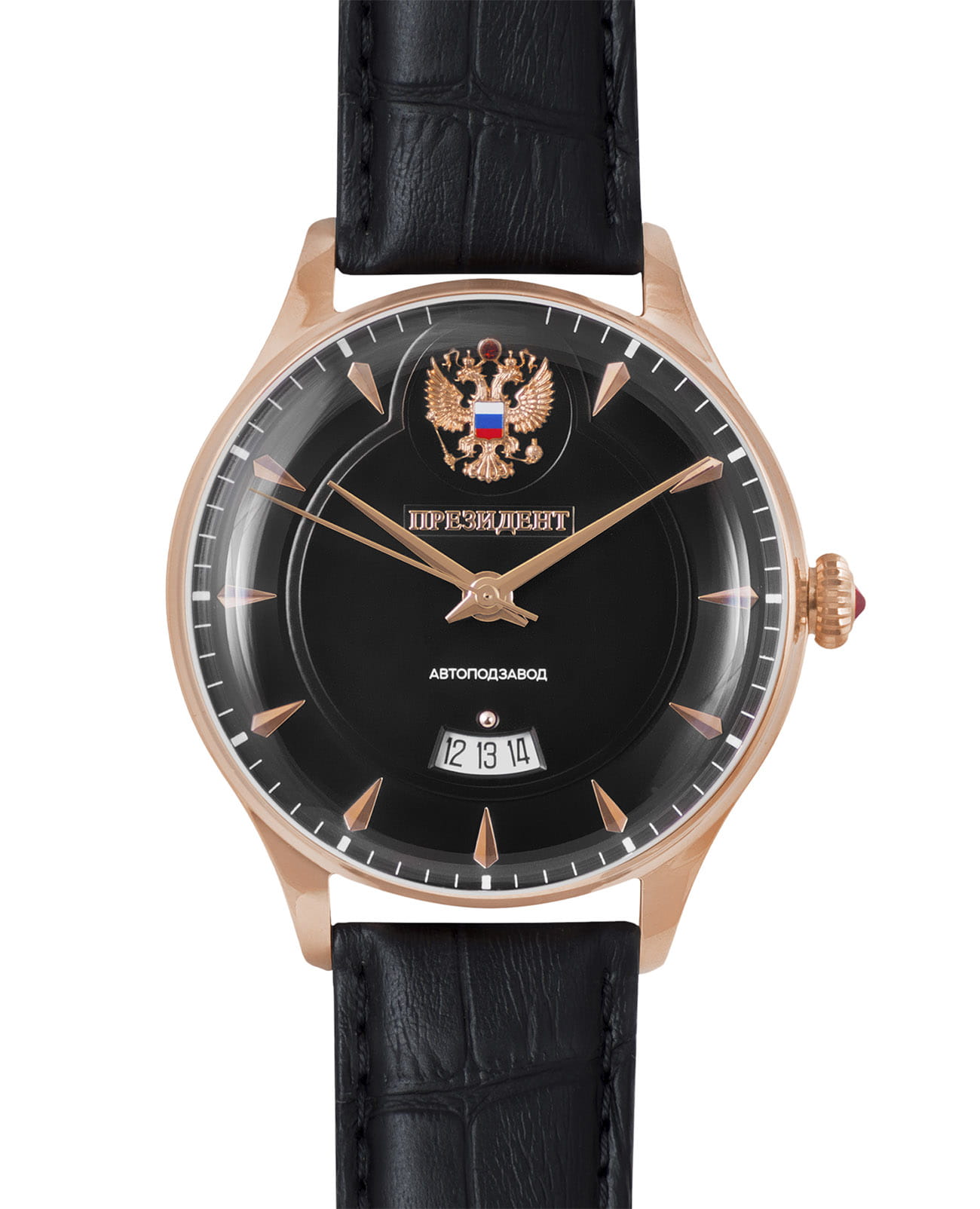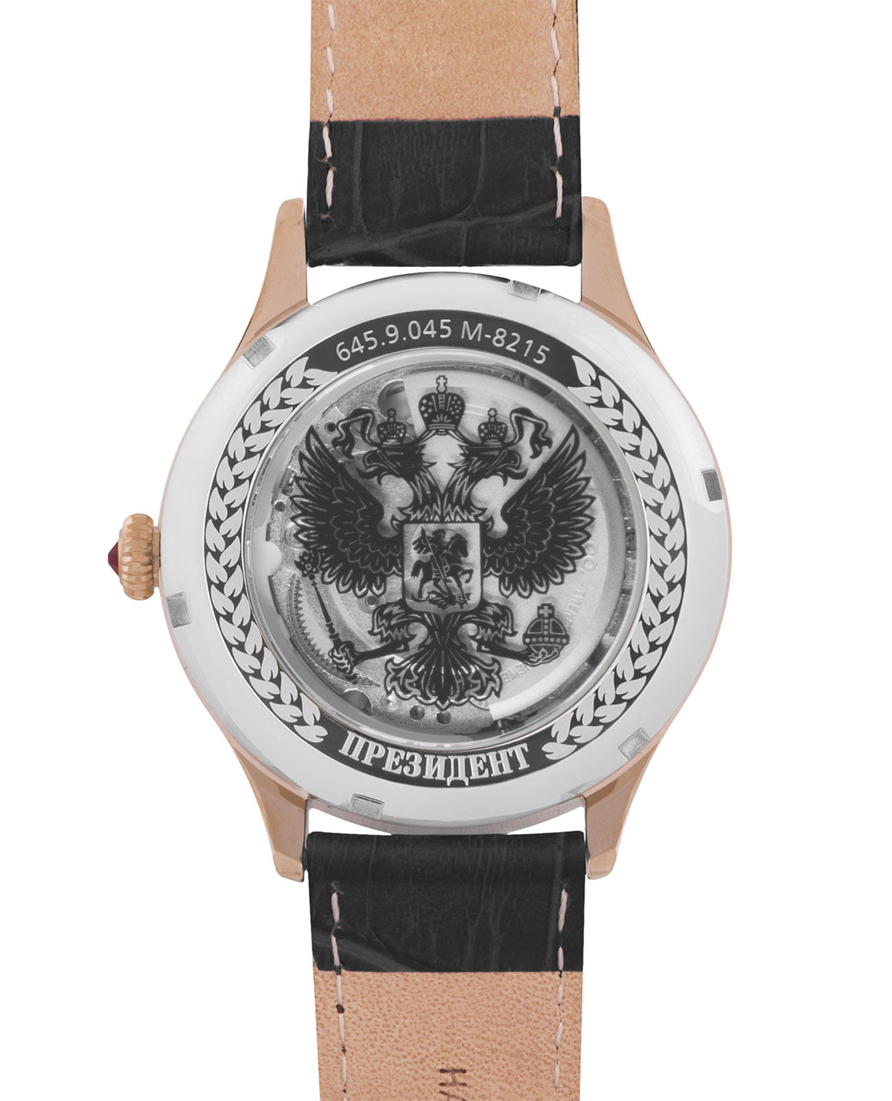 Мужские часы из коллекции «Президент» — это воплощение респектабельности и классического стиля. Модель выполнена в круглой форме с корпусом диаметром 42,2 мм и толщиной 13,8 мм, защищённым минеральным стекломМинеральное стеклоМинеральное стекло представляет собой искусственно выращенный минерал кварца. Такое стекло отличается особой устойчивостью к повреждениям и царапинам. Уступает по некоторым качествам сапфировому стеклу., устойчивым к мелким механическим повреждениям. Цвет корпуса — розовое золото, что придаёт модели благородный внешний вид и подчёркивает её уникальность. Часы оснащены функцией отображения даты и прозрачной задней крышкой, через которую можно наблюдать за работой механизма. На циферблате инкрустированы кристаллы Swarovski, добавляющие модели изысканности и блеска. Браслет чёрного цвета выполнен из натуральной кожи, а его ширина составляет 20 мм, что делает модель удобной и элегантной на запястье. Механизм с автоподзаводом обеспечивает надёжную работу и точность хода. Часы водонепроницаемы до 30 метров (), что позволяет использовать их в повседневных условиях — при мытье рук или под лёгким дождём. Эти часы станут универсальным аксессуаром для тех, кто ценит сочетание стиля, качества и эстетики — идеальный выбор для уверенных в себе мужчин, следящих за своим имиджем и предпочитающих выделяться.