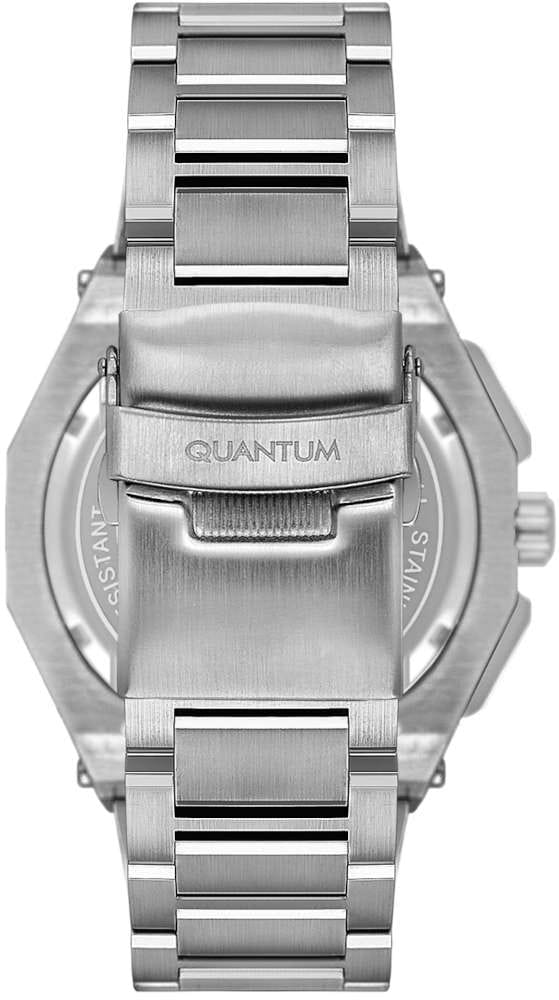 Мужские кварцевые часы Quantum HNG1011.350 — надёжный и функциональный аксессуар для повседневного ношения и активного отдыха. Корпус круглый, из нержавеющей стали, диаметром 46 мм. БезельБезельВнешний ободок, закрепляющий стекло. В спортивных часах так называется поворотное кольцо с делениями на циферблате, выполняет роль таймера – замеряет отрезки времени на шкале. Неподвижный безель – элемент декора. Однонаправленно вращающийся безель на дайверских часах позволяет фиксировать моменты погружения и выныривания на поверхность. из нержавеющей стали с PVD-покрытиемPVDУльтратонкое покрытие наносится в технике вакуумного напыления, сочетает в себе нитрид титана особой прочности со слоем золота или оксида хрома. Несёт в себе декоративную или защитную функцию.. Циферблат — чёрный со штриховыми метками и окошком даты. Стекло — минеральноеМинеральное стеклоМинеральное стекло представляет собой искусственно выращенный минерал кварца. Такое стекло отличается особой устойчивостью к повреждениям и царапинам. Уступает по некоторым качествам сапфировому стеклу. с антибликовым покрытием. Часы оснащены хронографомХронографФункция позволяет измерять отрезки времени с особой точностью: часы, минуты, секунды. Верным признаком хронографа является наличие на циферблате 3 дополнительных окошек-счётчиков.. Стрелки и метки с люминесцентным покрытиемЛюминесцентное покрытиеПозволяет считывать показания времени в темноте. Производители наносят на стрелки, часовые индексы, безель или поверхность циферблата светонакопительный состав, дающий холодное свечение.. Механизм японский кварцевый Seiko. Водонепроницаемость 100 м. Браслет — стальной на раскладной застёжкеРаскладная застёжкаТакой тип застёжки используется только на браслетах из металла. Она никогда не раскрывается полностью, происходит разделение на 2 и более частей. Раскладывающая застёжка снизит вероятность потери часов к минимуму.. Идеальный выбор для тех, кто ценит турецкий дизайн и практичность в классическом исполнении.