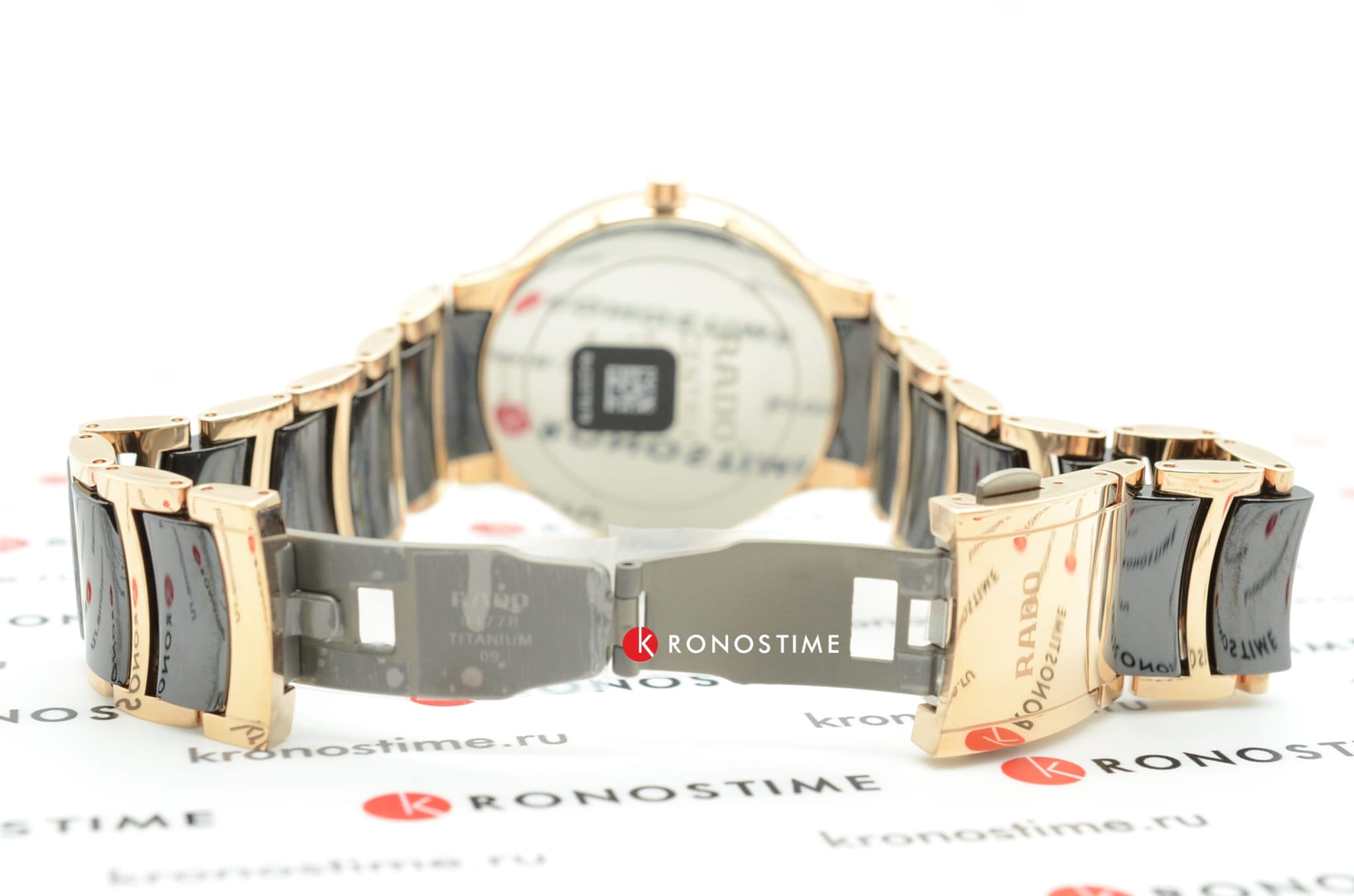 Круглый циферблат чёрного цвета выполнен в стиле минимализм. Он инкрустирован 4 бриллиантами весом в 0,011 карат, переливающиеся сияющие грани придают модели роскоши и великолепие. Оригинальный браслет из нержавеющей стали 316L имеет вставки из высокотехнологичной керамикиВысокотехнологичная керамикаИнновационный запатентованный Rado материал с гладкой или матовой поверхностью. Керамика за счёт кристаллической структуры обладает повышенной устойчивостью от возникновения царапин. Материал способен принимать температуру тела человека, обеспечивая невероятный комфорт при ношении.. Наручные часы оснащены кварцевым механизмом ETA 955.112 с высокой точностью хода. Надёжное стекло из сапфира. PVD-покрытиеPVDУльтратонкое покрытие наносится в технике вакуумного напыления, сочетает в себе нитрид титана особой прочности со слоем золота или оксида хрома. Несёт в себе декоративную или защитную функцию. цвета розового золота. Апертура даты. Диаметр корпуса: 38 мм.