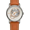 Дизайн модели является действительно роскошным - светлый циферблат дополнен двумя окружностями, декорированными сияющими драгоценными камнями. Перламутровое окошко украшено 32 бриллиантами в 0,113 карат, а скелетонизированное отверстие, сквозь которое просматривается движение деталей механизма, инкрустировано 39 бриллиантами в 0,035 карат. Часы оснащены автоматическим калибром ETA C07.631 с увеличенным резервом хода до 80 часов. Сапфировое стекло с антибликовой обработкой. Корпус из плазменной керамикиВысокотехнологичная плазменная керамикаИнновационный материал, технология запатентована. Выплавление керамики осуществляется в печи при 20 000 °C, белоснежный материал под воздействием ультравысокой температуры приобретает уникальный блеск, присущий металлам.. Прозрачная задняя крышка. Ремешок из натуральной кожи с системой быстрой установки. Водостойкость 50 метров. Диаметр корпуса: 35 мм.