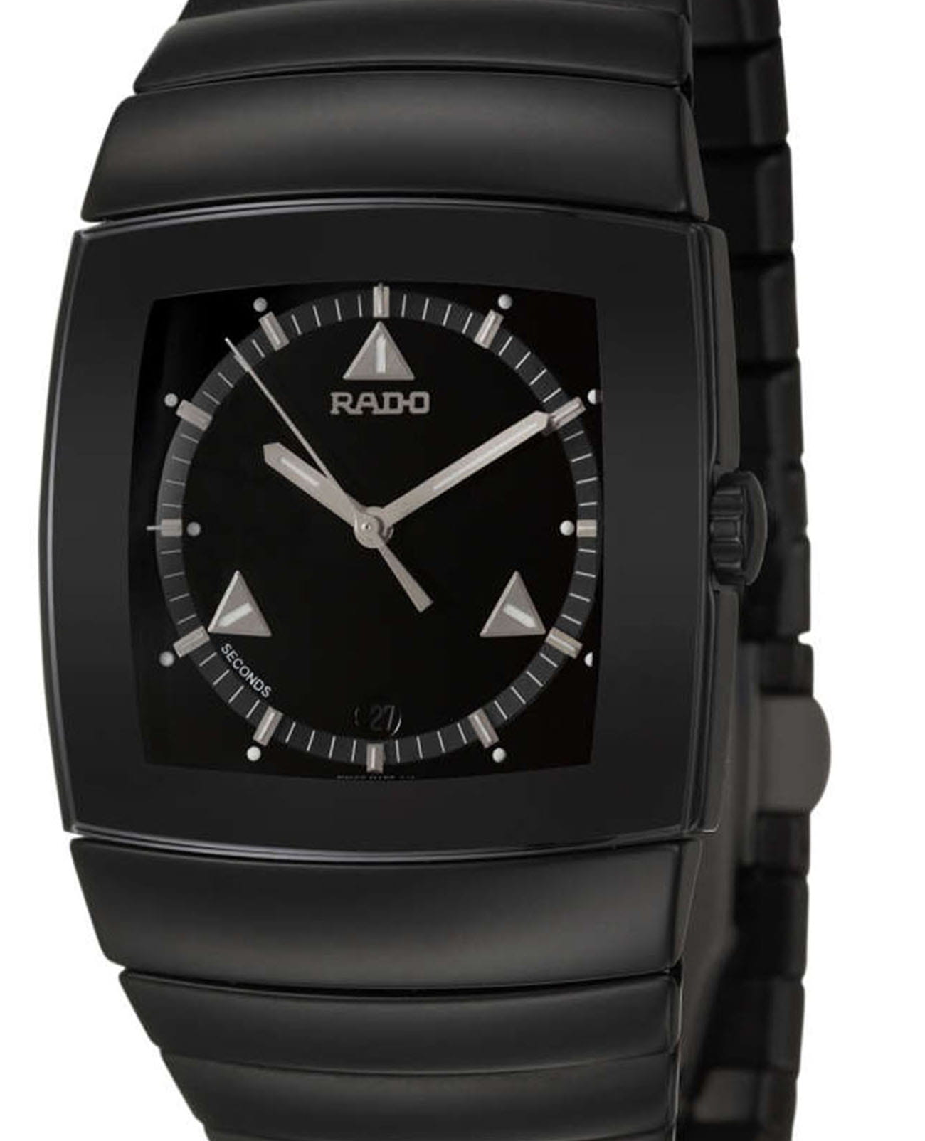 Часы Rado Sintra R13765152, произведение искусства и технологическое чудо, станут прекрасным дополнением к коллекции любого мужчины. Эти швейцарские часы оснащены кварцевым механизмом с указателем даты и тремя стрелками, заключенным в бочкообразный корпус из высокотехнологичной керамикиВысокотехнологичная керамикаИнновационный запатентованный Rado материал с гладкой или матовой поверхностью. Керамика за счёт кристаллической структуры обладает повышенной устойчивостью от возникновения царапин. Материал способен принимать температуру тела человека, обеспечивая невероятный комфорт при ношении.. Сапфировое стеклоСапфировое стеклоПрочный и надёжный материал из кристалла сапфира синтетического происхождения, характеризующийся особой твёрдостью и устойчивостью к царапинам и повреждениям. устойчивое к появлению царапин, обладающее высокой прозрачностью. Класс водозащиты: 30 метров, позволит защитить корпус от случайных брызг или капель дождя. Браслет из высокотехнологичной керамикиВысокотехнологичная керамикаИнновационный запатентованный Rado материал с гладкой или матовой поверхностью. Керамика за счёт кристаллической структуры обладает повышенной устойчивостью от возникновения царапин. Материал способен принимать температуру тела человека, обеспечивая невероятный комфорт при ношении. на раскладной застёжкеРаскладная застёжкаТакой тип застёжки используется только на браслетах из металла. Она никогда не раскрывается полностью, происходит разделение на 2 и более частей. Раскладывающая застёжка снизит вероятность потери часов к минимуму..