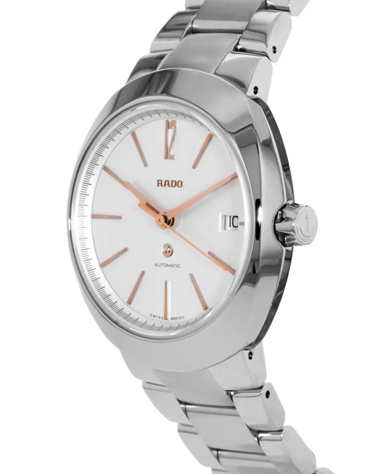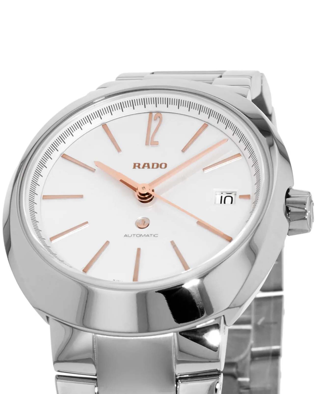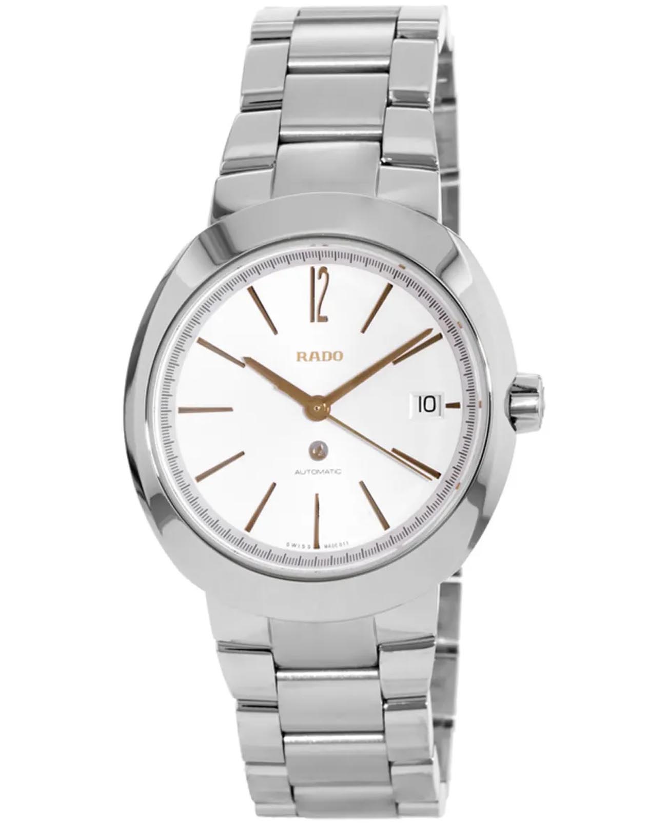 Мужские механические швейцарские часы Rado Rado D-Star R15513113. Сапфировое стеклоСапфировое стеклоПрочный и надёжный материал из кристалла сапфира синтетического происхождения, характеризующийся особой твёрдостью и устойчивостью к царапинам и повреждениям. устойчивое к мелким механическим повреждениям. Корпус часов изготовлен из нержавеющей стали. Окошко даты находится в положении 3 часа.  Класс водозащиты: 100 метров, позволит плавать, нырять и заниматься другими водными видами спорта. Браслет из нержавеющей стали на раскладной застёжкеРаскладная застёжкаТакой тип застёжки используется только на браслетах из металла. Она никогда не раскрывается полностью, происходит разделение на 2 и более частей. Раскладывающая застёжка снизит вероятность потери часов к минимуму..