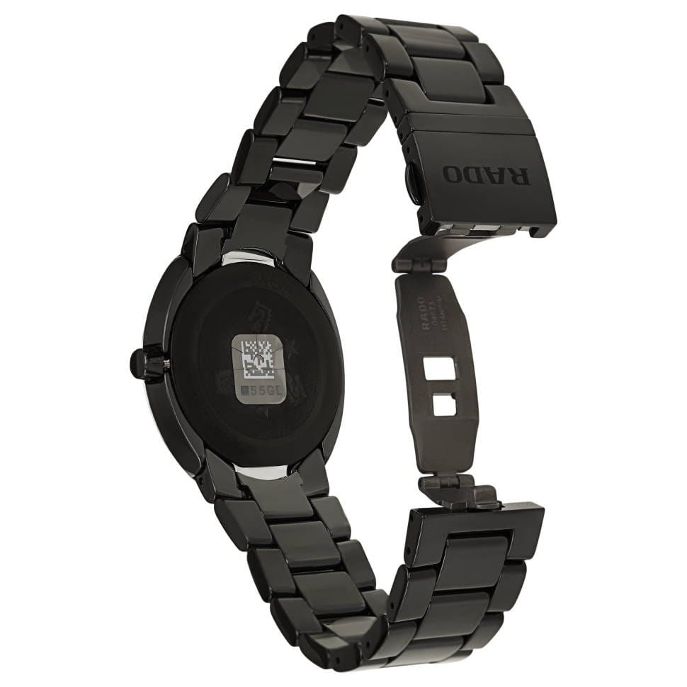 Мужские швейцарские часы с надёжным кварцевым механизмом. Rado Hyperchrome R15518152. Сапфировое стеклоСапфировое стеклоПрочный и надёжный материал из кристалла сапфира синтетического происхождения, характеризующийся особой твёрдостью и устойчивостью к царапинам и повреждениям. устойчивое к мелким механическим повреждениям. Корпус и браслет часов изготовлены из Высокотехнологичная керамикаВысокотехнологичная керамикаИнновационный запатентованный Rado материал с гладкой или матовой поверхностью. Керамика за счёт кристаллической структуры обладает повышенной устойчивостью от возникновения царапин. Материал способен принимать температуру тела человека, обеспечивая невероятный комфорт при ношении.. Браслет на раскладной застёжкеРаскладная застёжкаТакой тип застёжки используется только на браслетах из металла. Она никогда не раскрывается полностью, происходит разделение на 2 и более частей. Раскладывающая застёжка снизит вероятность потери часов к минимуму.. Окошко даты находится в положении 3 часа. Стрелки и метки с люминесцентным покрытиемЛюминесцентное покрытиеПозволяет считывать показания времени в темноте. Производители наносят на стрелки, часовые индексы, безель или поверхность циферблата светонакопительный состав, дающий холодное свечение.. Класс водозащиты: 100 метров, позволит плавать, нырять и заниматься другими водными видами спорта.