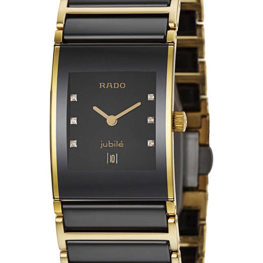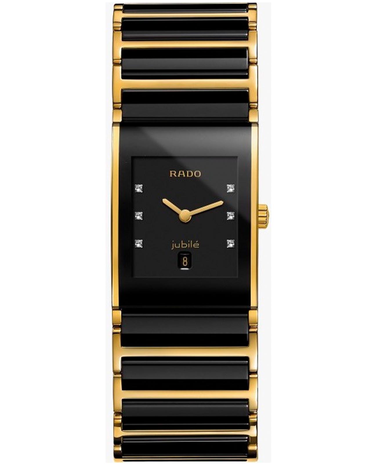 Женские часы Rado Integral R20788752 с надёжным кварцевым механизмом. Сапфировое стеклоСапфировое стеклоПрочный и надёжный материал из кристалла сапфира синтетического происхождения, характеризующийся особой твёрдостью и устойчивостью к царапинам и повреждениям. устойчивое к мелким механическим повреждениям. Корпус выполнен из нержавеющей стали с PVD-покрытиемPVDУльтратонкое покрытие наносится в технике вакуумного напыления, сочетает в себе нитрид титана особой прочности со слоем золота или оксида хрома. Несёт в себе декоративную или защитную функцию.. Класс водозащиты: 30 метров, позволит защитить корпус от случайных брызг или капель дождя. Циферблат декорирован 6 бриллиантами. Стальной браслет с PVD-покрытиемPVDУльтратонкое покрытие наносится в технике вакуумного напыления, сочетает в себе нитрид титана особой прочности со слоем золота или оксида хрома. Несёт в себе декоративную или защитную функцию. с вставками из высокотехнологичной керамикиВысокотехнологичная керамикаИнновационный запатентованный Rado материал с гладкой или матовой поверхностью. Керамика за счёт кристаллической структуры обладает повышенной устойчивостью от возникновения царапин. Материал способен принимать температуру тела человека, обеспечивая невероятный комфорт при ношении. на раскладной застёжкеРаскладная застёжкаТакой тип застёжки используется только на браслетах из металла. Она никогда не раскрывается полностью, происходит разделение на 2 и более частей. Раскладывающая застёжка снизит вероятность потери часов к минимуму.. Отображение даты в положении «6 часов».