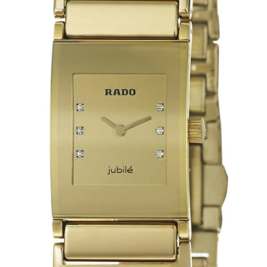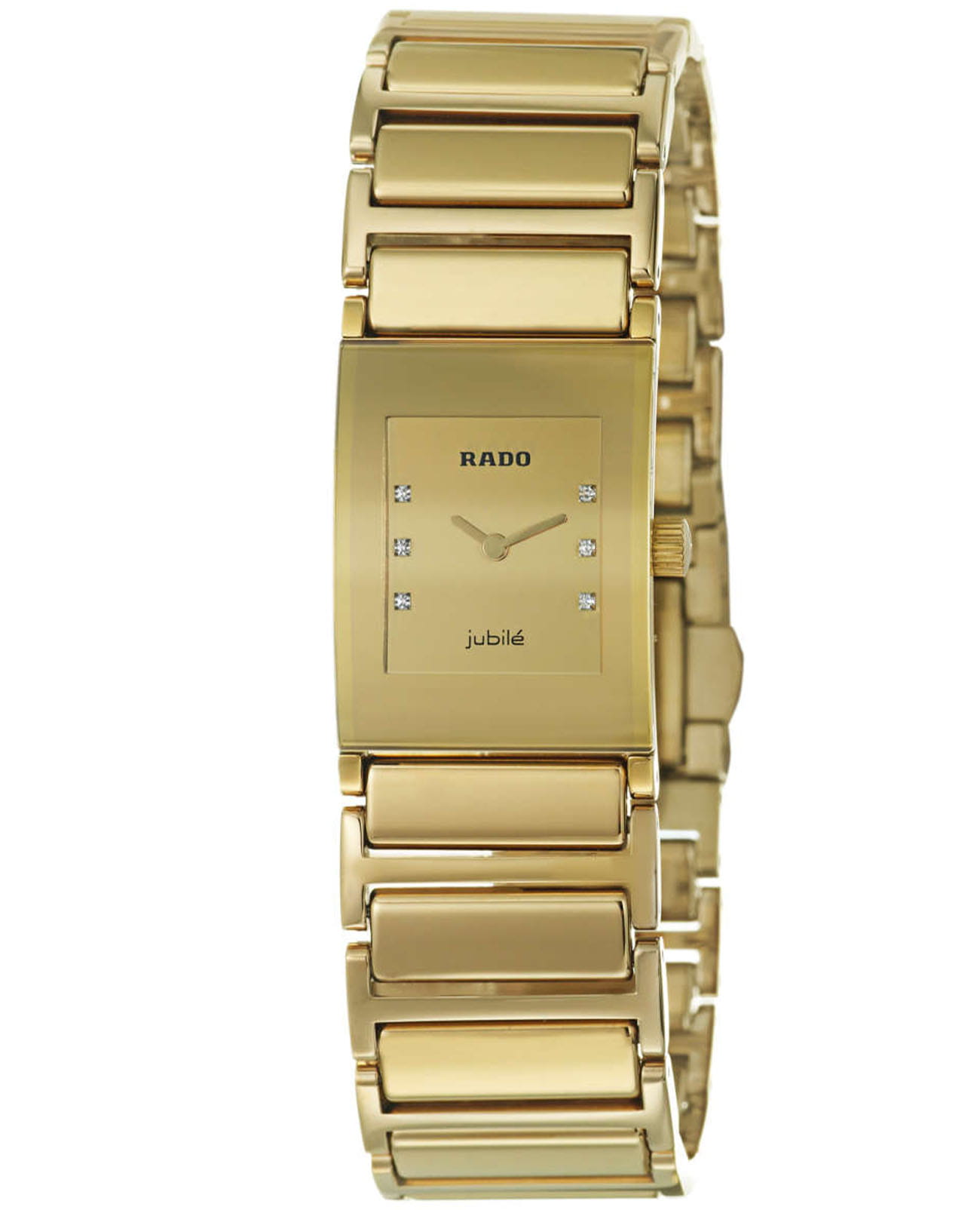 Женские часы Rado Integral R20792732 с надёжным кварцевым механизмом. Сапфировое стеклоСапфировое стеклоПрочный и надёжный материал из кристалла сапфира синтетического происхождения, характеризующийся особой твёрдостью и устойчивостью к царапинам и повреждениям. устойчивое к мелким механическим повреждениям. Корпус выполнен из нержавеющей стали с PVD-покрытиемPVDУльтратонкое покрытие наносится в технике вакуумного напыления, сочетает в себе нитрид титана особой прочности со слоем золота или оксида хрома. Несёт в себе декоративную или защитную функцию.. Класс водозащиты: 30 метров, позволит защитить корпус от случайных брызг или капель дождя. Стальной браслет с PVD-покрытиемPVDУльтратонкое покрытие наносится в технике вакуумного напыления, сочетает в себе нитрид титана особой прочности со слоем золота или оксида хрома. Несёт в себе декоративную или защитную функцию. с CeramosCeramosМатериал являет собой инновационное сочетание высокотехнологичной керамики и сплава металла. Он объединяет керамическую устойчивость к царапинам и металлический роскошный блеск. на раскладной застёжкеРаскладная застёжкаТакой тип застёжки используется только на браслетах из металла. Она никогда не раскрывается полностью, происходит разделение на 2 и более частей. Раскладывающая застёжка снизит вероятность потери часов к минимуму.. Циферблат декорирован 6 бриллиантами