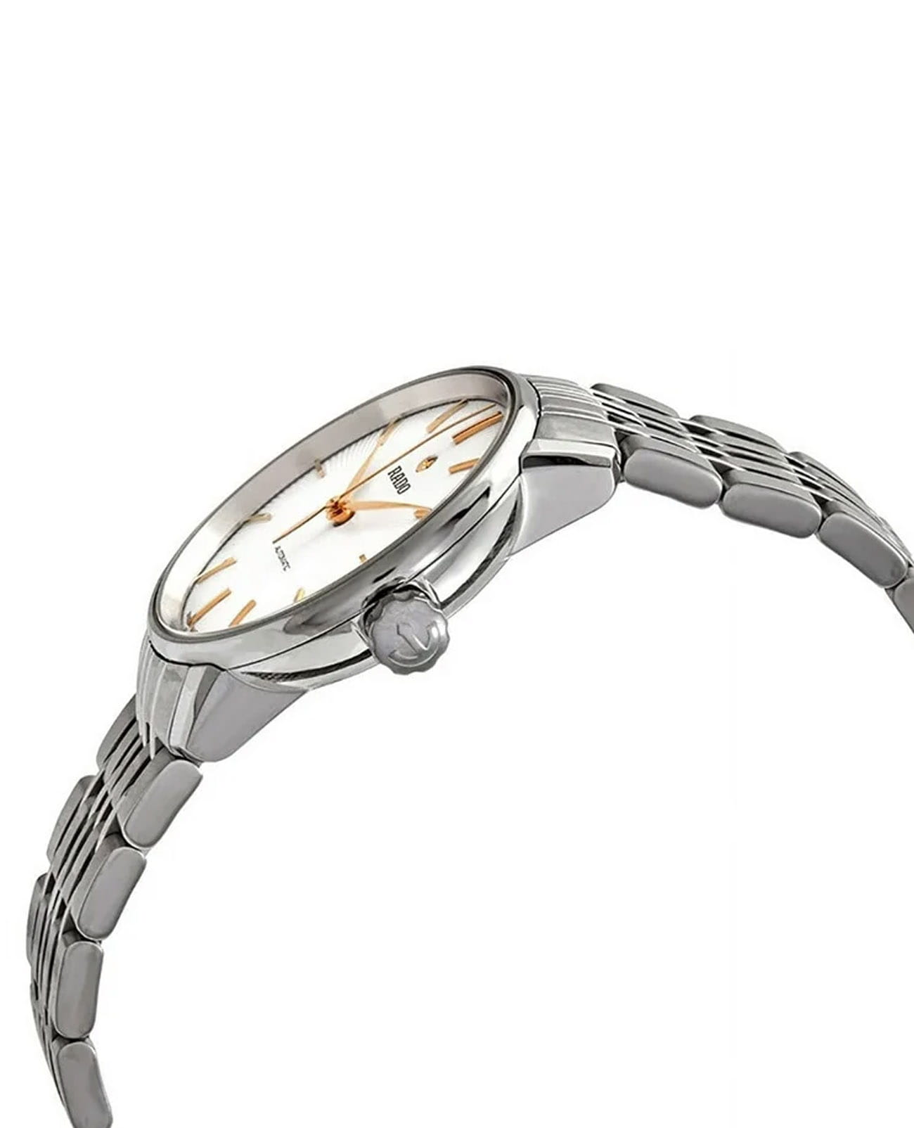 Женские механические швейцарские часы с автоподзаводом Rado Coupole Classic Automatic R22862024. Сапфировое стеклоСапфировое стеклоПрочный и надёжный материал из кристалла сапфира синтетического происхождения, характеризующийся особой твёрдостью и устойчивостью к царапинам и повреждениям. устойчивое к мелким механическим повреждениям. Корпус часов изготовлен из нержавеющей стали. Класс водозащиты: 50 метров, позволит защитить корпус от случайных брызг или капель дождя. Стальной браслет на раскладной застёжкеРаскладная застёжкаТакой тип застёжки используется только на браслетах из металла. Она никогда не раскрывается полностью, происходит разделение на 2 и более частей. Раскладывающая застёжка снизит вероятность потери часов к минимуму..