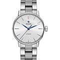Лаконичный белый циферблат имеет оригинальный узор, такое исполнение привнесёт в сдержанный стиль строгого пиджака долю эксклюзивности. В качестве цветового акцента используются яркие синие стрелки. Наручные часы с автоподзаводом имеют швейцарский калибр ETA 2671, сохраняющий запас хода на 38 часов. Стекло из сапфира с покрытием "антиблик". Скелетонизированная задняя крышка. Надёжный стальной браслет. Диаметр корпуса: 31,8 мм.