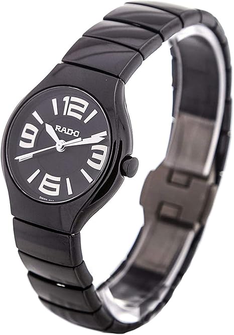 Глянцевый корпус представлен в оригинальном дизайне, его линии плавно перетекают в браслет. Наручные часы выполнены из высокотехнологичной керамикиВысокотехнологичная керамикаИнновационный запатентованный Rado материал с гладкой или матовой поверхностью. Керамика за счёт кристаллической структуры обладает повышенной устойчивостью от возникновения царапин. Материал способен принимать температуру тела человека, обеспечивая невероятный комфорт при ношении., материал не вызывает аллергии и обеспечивает невероятный комфорт при ношении. Сапфировое стеклоСапфировое стеклоПрочный и надёжный материал из кристалла сапфира синтетического происхождения, характеризующийся особой твёрдостью и устойчивостью к царапинам и повреждениям. устойчиво к образованию царапин. Водостойкость 3 бар. Застёжка «бабочка» с кнопкамиЗастёжка "бабочка"Такой вид застёжки дополняется предохранителями, помогающими избежать случайного раскрытия браслета. Обладают изящным исполнением. .