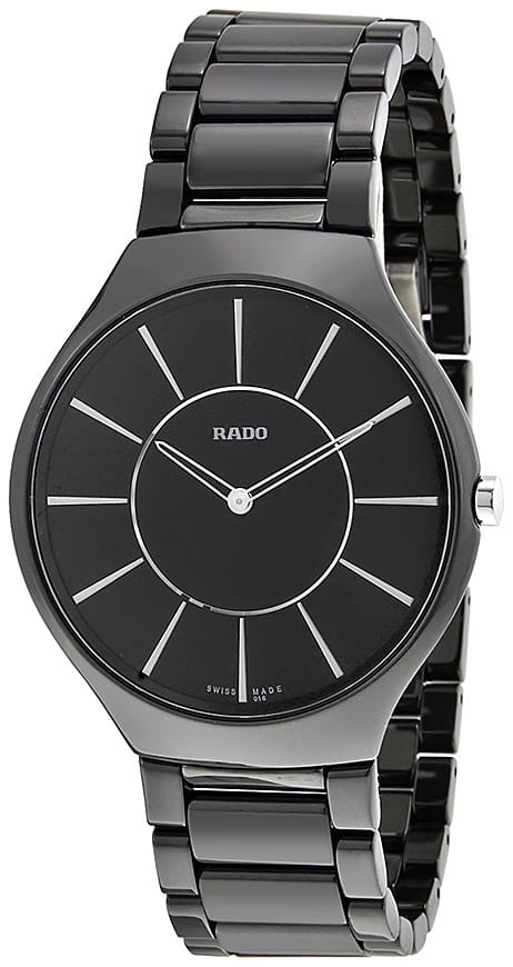 Швейцарские женские Rado True Thinline R27741162, кварцевый механизм с высокой точностью. Сапфировое стеклоСапфировое стеклоПрочный и надёжный материал из кристалла сапфира синтетического происхождения, характеризующийся особой твёрдостью и устойчивостью к царапинам и повреждениям. устойчивое к появлению царапин, обладающее высокой прозрачностью. Корпус часов изготовлен из высокотехнологичной керамикиВысокотехнологичная керамикаИнновационный запатентованный Rado материал с гладкой или матовой поверхностью. Керамика за счёт кристаллической структуры обладает повышенной устойчивостью от возникновения царапин. Материал способен принимать температуру тела человека, обеспечивая невероятный комфорт при ношении.. Класс водозащиты: 30 метров, позволит защитить корпус от случайных брызг или капель дождя. Керамический браслет на застёжке-бабочке с кнопкамиЗастёжка "бабочка"Такой вид застёжки дополняется предохранителями, помогающими избежать случайного раскрытия браслета. Обладают изящным исполнением. .