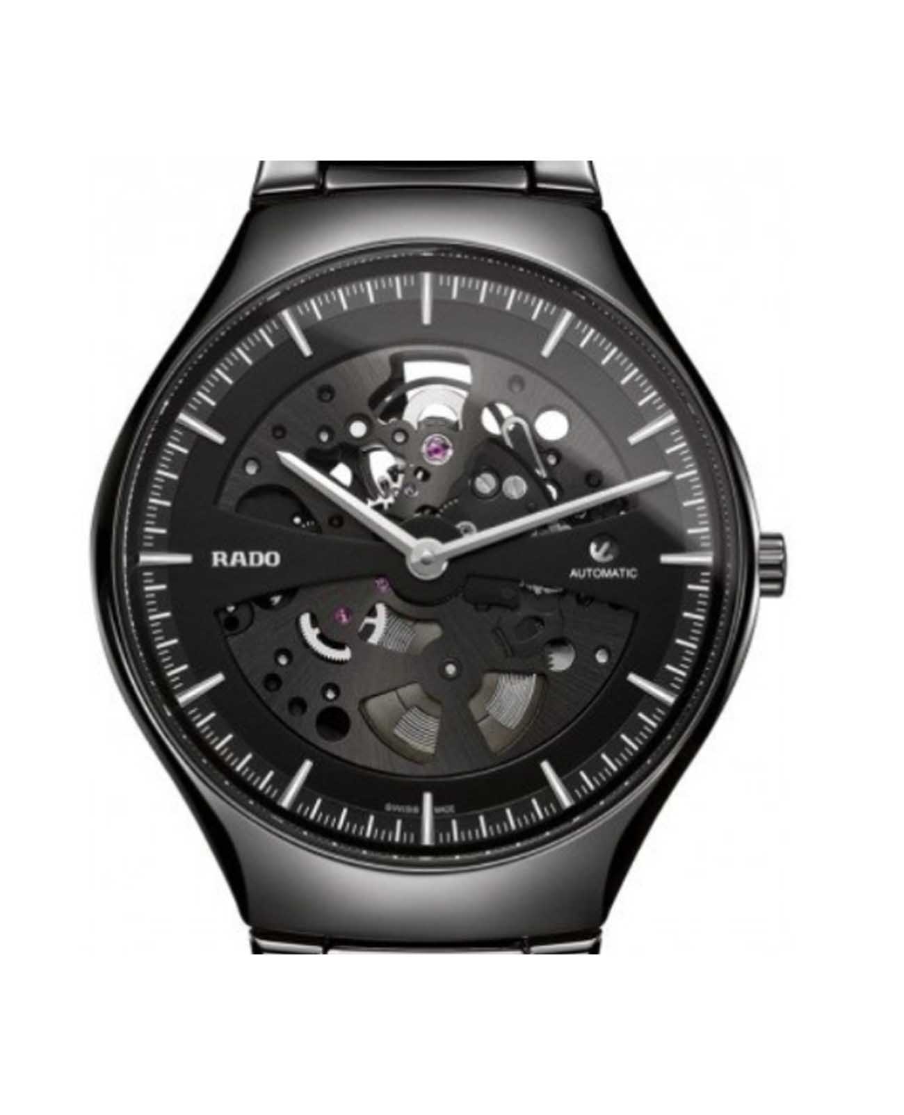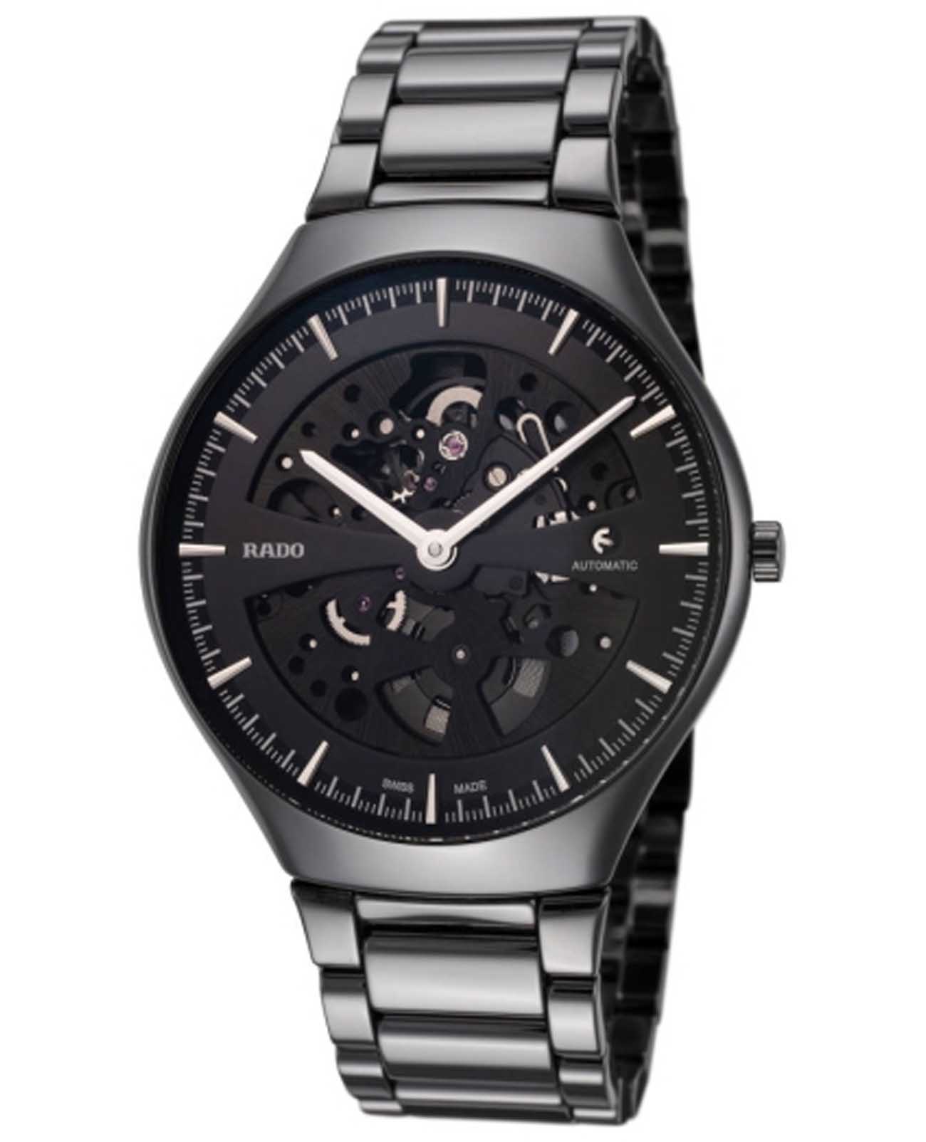 Швейцарские мужские механические швейцарские часы с автоподзаводом Rado True Thinline R27971152. Сапфировое стеклоСапфировое стеклоПрочный и надёжный материал из кристалла сапфира синтетического происхождения, характеризующийся особой твёрдостью и устойчивостью к царапинам и повреждениям. устойчивое к появлению царапин, обладающее высокой прозрачностью. Корпус часов изготовлен из высокотехнологичной керамикиВысокотехнологичная керамикаИнновационный запатентованный Rado материал с гладкой или матовой поверхностью. Керамика за счёт кристаллической структуры обладает повышенной устойчивостью от возникновения царапин. Материал способен принимать температуру тела человека, обеспечивая невероятный комфорт при ношении.. Скелетонизированный циферблат. Класс водозащиты: 30 метров, позволит защитить корпус от случайных брызг или капель дождя. Браслет из высокотехнологичной керамикиВысокотехнологичная керамикаИнновационный запатентованный Rado материал с гладкой или матовой поверхностью. Керамика за счёт кристаллической структуры обладает повышенной устойчивостью от возникновения царапин. Материал способен принимать температуру тела человека, обеспечивая невероятный комфорт при ношении. на застёжке-бабочке с кнопкамиЗастёжка "бабочка"Такой вид застёжки дополняется предохранителями, помогающими избежать случайного раскрытия браслета. Обладают изящным исполнением. .