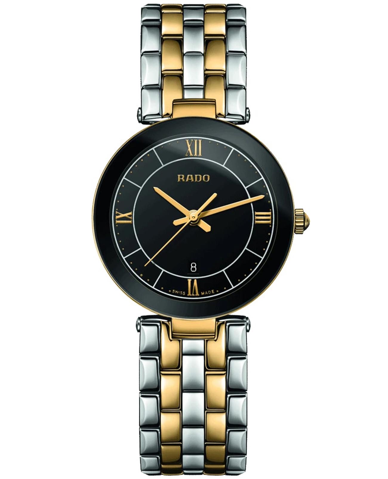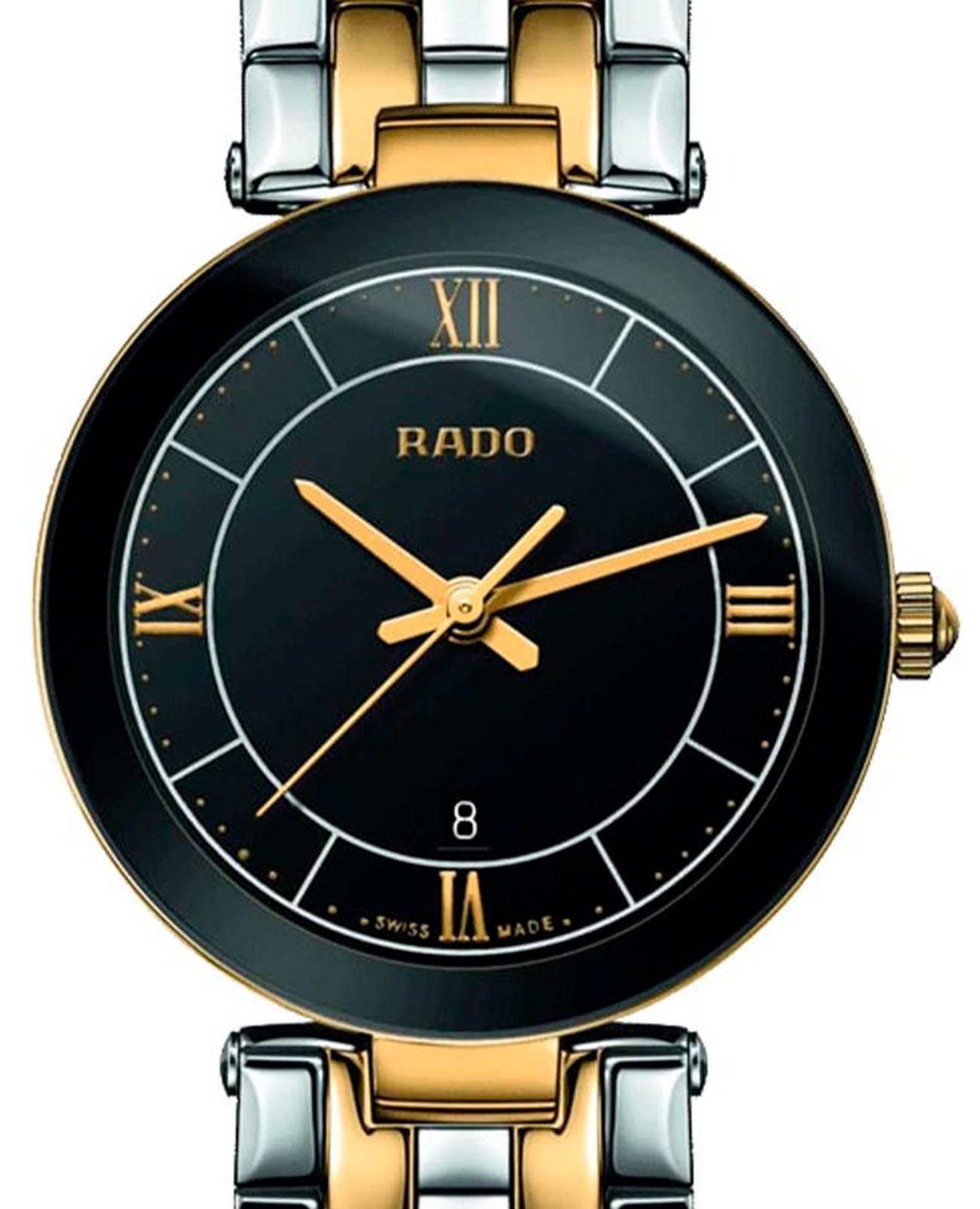 Женские швейцарские кварцевые часы Rado Florence R48871173. Сапфировое стеклоСапфировое стеклоПрочный и надёжный материал из кристалла сапфира синтетического происхождения, характеризующийся особой твёрдостью и устойчивостью к царапинам и повреждениям. устойчивое к мелким механическим повреждениям. Стальной браслет на застёжке-бабочке. Корпус и браслет часов изготовлены из нержавеющей стали с частичным PVD-покрытиемPVDУльтратонкое покрытие наносится в технике вакуумного напыления, сочетает в себе нитрид титана особой прочности со слоем золота или оксида хрома. Несёт в себе декоративную или защитную функцию.. Окошко даты находится в положении 6 часов. Класс водозащиты: 30 метров, позволит защитить корпус от случайных брызг или капель дождя.