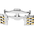 Стальной браслет с частичным PVD-покрытиемPVDУльтратонкое покрытие наносится в технике вакуумного напыления, сочетает в себе нитрид титана особой прочности со слоем золота или оксида хрома. Несёт в себе декоративную или защитную функцию. закреплён на удобной и надёжной застёжке-бабочке с кнопкамиЗастёжка "бабочка"Такой вид застёжки дополняется предохранителями, помогающими избежать случайного раскрытия браслета. Обладают изящным исполнением. , обеспечивая комфортное и безопасное крепление на запястье.