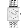 Американские женские наручные часы с кварцевым механизмом Rosefield The Boxy QWSS-Q08, кварцевый механизм с высокой точностью. Класс водозащиты: 30 метров, позволит защитить корпус от случайных брызг или капель дождя. Корпус часов изготовлен из стали, серебристого цвета.
