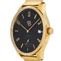 Стальной корпус круглой формы выполнен из нержавеющей стали с PVD-покрытиемPVDУльтратонкое покрытие наносится в технике вакуумного напыления, сочетает в себе нитрид титана особой прочности со слоем золота или оксида хрома. Несёт в себе декоративную или защитную функцию., что придает часам элегантный и премиальный вид. Циферблат с цифрами и метками в виде штрихов надежно защищен закаленным минеральным стекломМинеральное стеклоМинеральное стекло представляет собой искусственно выращенный минерал кварца. Такое стекло отличается особой устойчивостью к повреждениям и царапинам. Уступает по некоторым качествам сапфировому стеклу., что предотвращает появление царапин и повреждений.