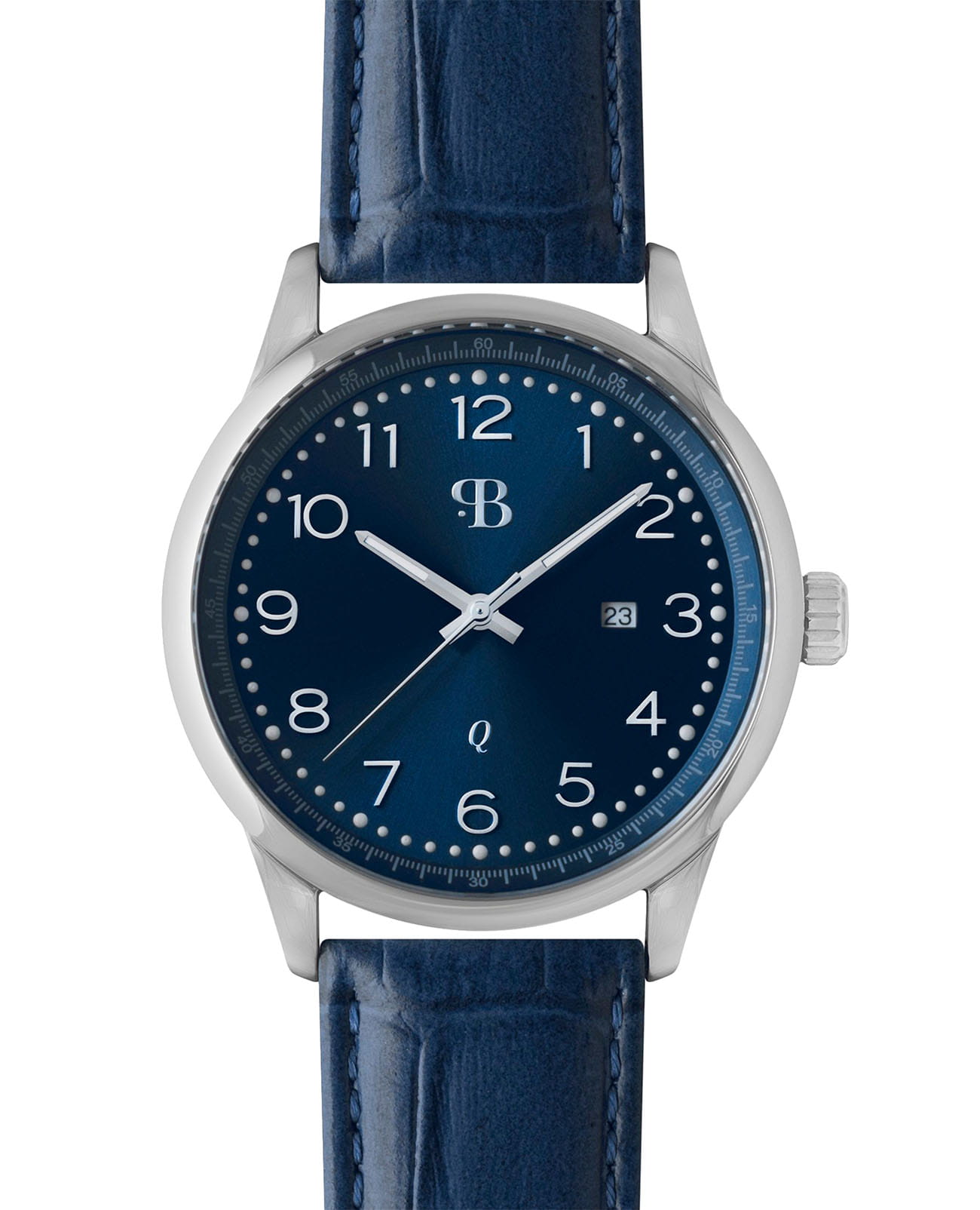 Мужские кварцевые часы — это классический аксессуар для ценителя стиля и точности. Корпус диаметром 42 мм и толщиной 10 мм выполнен из нержавеющей стали. Циферблат синего цвета оформлен арабскими цифрами и стрелками. Окошко даты расположено в положении 3 часов. Стрелки с люминесцентным покрытиемЛюминесцентное покрытиеПозволяет считывать показания времени в темноте. Производители наносят на стрелки, часовые индексы, безель или поверхность циферблата светонакопительный состав, дающий холодное свечение., обеспечивающим хорошую читаемость в темноте. Циферблат защищён сапфировым стекломСапфировое стеклоПрочный и надёжный материал из кристалла сапфира синтетического происхождения, характеризующийся особой твёрдостью и устойчивостью к царапинам и повреждениям.. Часы оснащены кожаным ремешком с раскладной застёжкойРаскладная застёжкаТакой тип застёжки используется только на браслетах из металла. Она никогда не раскрывается полностью, происходит разделение на 2 и более частей. Раскладывающая застёжка снизит вероятность потери часов к минимуму.. Водонепроницаемость 100 м позволяет использовать часы для плавания и повседневного ношения. Идеальный выбор для тех, кто ценит стиль, точность и надёжность.