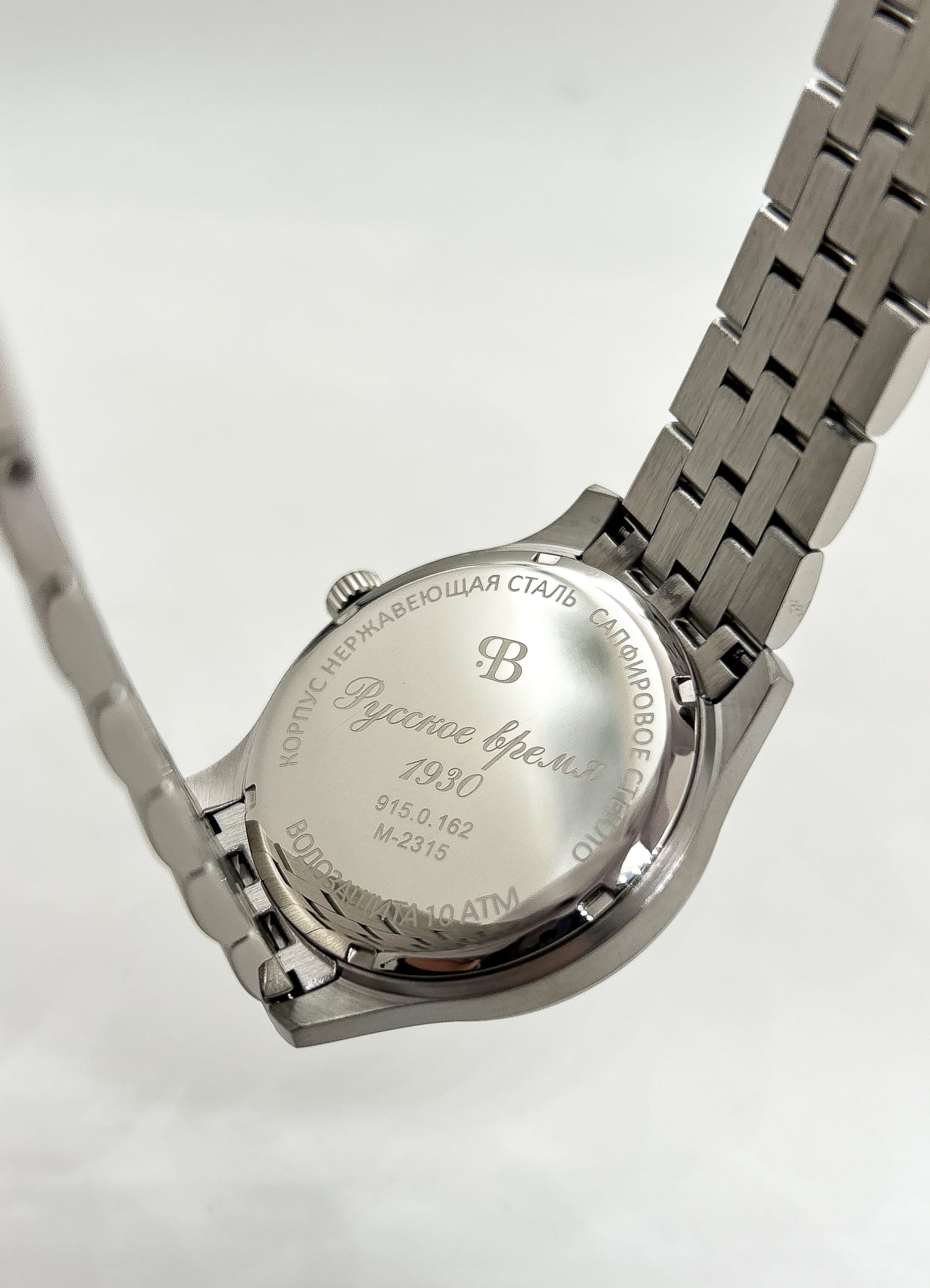 Российские часы Русское время 9150162 оснащены кварцевый механизм, что обеспечивает исключительную надежность и точность хода. Корпус часов выполнен из стали, что придает ему долговечность и устойчивость к внешним воздействиям.Сапфировое стеклоСапфировое стеклоПрочный и надёжный материал из кристалла сапфира синтетического происхождения, характеризующийся особой твёрдостью и устойчивостью к царапинам и повреждениям. устойчиво к мелким механическим повреждениям, что гарантирует долговечность и сохранение первоначального вида.