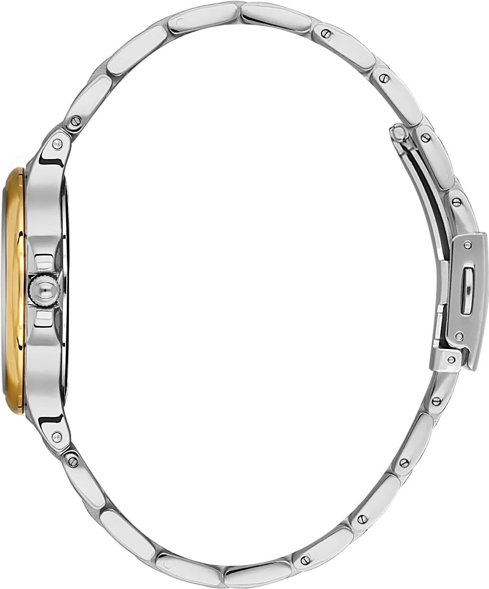 Женские кварцевые часы Santa Barbara Polo & Racquet Club — это элегантный аксессуар, подчеркивающий романтичное настроение. Корпус диаметром 35 мм и высотой 42 мм выполнен из латуни. Безель с IP-покрытиемIP-покрытиеМетод ионного напыления. Демонстрирует повышенную устойчивость к истиранию, окислению и химическим веществам. Под воздействием высокого давления и температуры около 1500°C молекулы металла надёжно соединяются с частицами корпуса часов.. Циферблат зелёного цвета с гильошированной текстурой украшен фирменным логотипом и накладными метками в виде точек, а также арабской цифрой 12. Указатели дня недели и даты вынесены на отдельные субциферблаты, также присутствует индикация 24-часового формата времени. Циферблат защищён минеральным стекломМинеральное стеклоМинеральное стекло представляет собой искусственно выращенный минерал кварца. Такое стекло отличается особой устойчивостью к повреждениям и царапинам. Уступает по некоторым качествам сапфировому стеклу.. Механизм — кварцевый калибр VX3JE1. Часы оснащены браслетом из нержавеющей стали с частичным IP-покрытиемIP-покрытиеМетод ионного напыления. Демонстрирует повышенную устойчивость к истиранию, окислению и химическим веществам. Под воздействием высокого давления и температуры около 1500°C молекулы металла надёжно соединяются с частицами корпуса часов. на раскладной застёжкеРаскладная застёжкаТакой тип застёжки используется только на браслетах из металла. Она никогда не раскрывается полностью, происходит разделение на 2 и более частей. Раскладывающая застёжка снизит вероятность потери часов к минимуму.. Водонепроницаемость 50 м позволяет использовать часы в повседневных условиях. Идеальный выбор для тех, кто ценит женственность, стиль и качество.