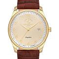 Циферблат оформлен крупными арабскими цифрами в винтажном стиле и тонкими стрелками, что обеспечивает отличную читаемость. В нижней части расположено аккуратное окошко даты, дополняющее функциональность.