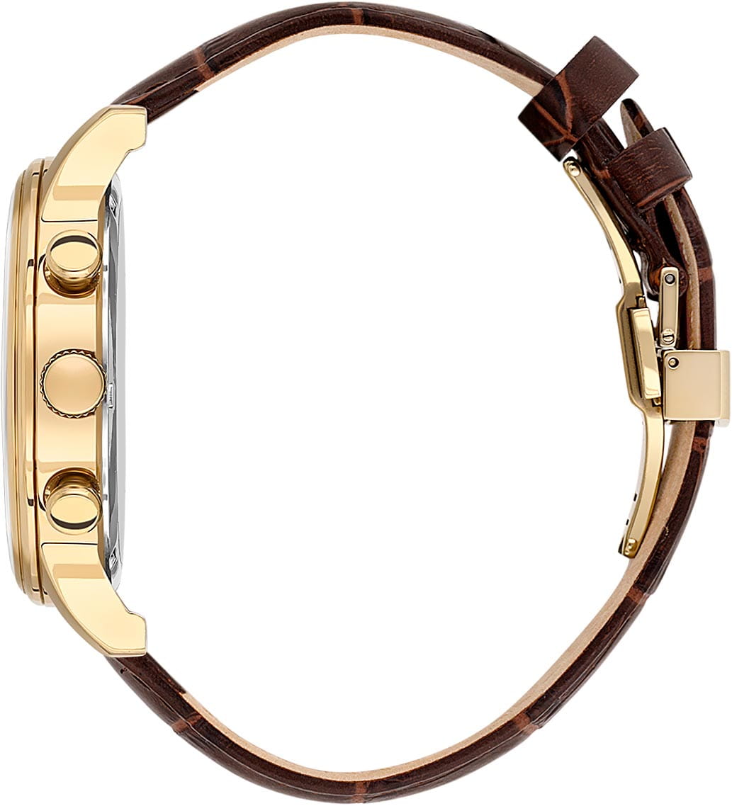 Мужские кварцевые часы Santa Barbara Polo & Racquet Club SB.1.10593-5 — воплощение элегантности и технического совершенства. Корпус из нержавеющей стали с IP-покрытиемIP-покрытиеМетод ионного напыления. Демонстрирует повышенную устойчивость к истиранию, окислению и химическим веществам. Под воздействием высокого давления и температуры около 1500°C молекулы металла надёжно соединяются с частицами корпуса часов. золотистого цвета, диаметром 45 мм, что делает их устойчивыми к внешним воздействиям и придает благородный вид. Стрелки с люминесцентным покрытиемЛюминесцентное покрытиеПозволяет считывать показания времени в темноте. Производители наносят на стрелки, часовые индексы, безель или поверхность циферблата светонакопительный состав, дающий холодное свечение., обеспечивающим хорошую читаемость в темноте. Циферблат защищён минеральным стекломМинеральное стеклоМинеральное стекло представляет собой искусственно выращенный минерал кварца. Такое стекло отличается особой устойчивостью к повреждениям и царапинам. Уступает по некоторым качествам сапфировому стеклу. устойчивое к царапинам и механическим повреждениям. Циферблат разделен на две фактурные части и украшен фирменным логотипом. Дата и день недели вынесены на отдельные циферблаты. Кожаный ремешок на застёжке-бабочке с кнопкамиЗастёжка "бабочка"Такой вид застёжки дополняется предохранителями, помогающими избежать случайного раскрытия браслета. Обладают изящным исполнением. обеспечивает комфортное и безопасное ношение. Водонепроницаемость 50 метров позволит защитить корпус от случайных брызг или капель дождя. Идеальный выбор для тех, кто ценит элегантный дизайн и качество.