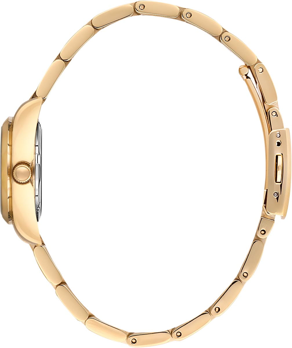 Женские кварцевые часы Santa Barbara Polo & Racquet Club SB.4.10012-4 — это стильный аксессуар, подчеркивающий индивидуальность. Изысканный корпус диаметром 26 мм выполнен из нержавеющей стали 316L с IP-покрытиемIP-покрытиеМетод ионного напыления. Демонстрирует повышенную устойчивость к истиранию, окислению и химическим веществам. Под воздействием высокого давления и температуры около 1500°C молекулы металла надёжно соединяются с частицами корпуса часов. золотистого цвета. Накладные метки в виде точек, украшенных кристаллами, а также фирменным логотипом. Стрелки с люминесцентным покрытиемЛюминесцентное покрытиеПозволяет считывать показания времени в темноте. Производители наносят на стрелки, часовые индексы, безель или поверхность циферблата светонакопительный состав, дающий холодное свечение., обеспечивающим хорошую читаемость в темноте. Защиту циферблата обеспечивает минеральное стеклоМинеральное стеклоМинеральное стекло представляет собой искусственно выращенный минерал кварца. Такое стекло отличается особой устойчивостью к повреждениям и царапинам. Уступает по некоторым качествам сапфировому стеклу., устойчивое к мелким механическим повреждениям. Часы оснащены надежным стальным браслетом с IP-покрытиемIP-покрытиеМетод ионного напыления. Демонстрирует повышенную устойчивость к истиранию, окислению и химическим веществам. Под воздействием высокого давления и температуры около 1500°C молекулы металла надёжно соединяются с частицами корпуса часов. на раскладной застёжкеРаскладная застёжкаТакой тип застёжки используется только на браслетах из металла. Она никогда не раскрывается полностью, происходит разделение на 2 и более частей. Раскладывающая застёжка снизит вероятность потери часов к минимуму.. Водонепроницаемость 30 м позволяет использовать часы в повседневных условиях. Идеальный выбор для тех, кто ценит элегантный дизайн и качество.