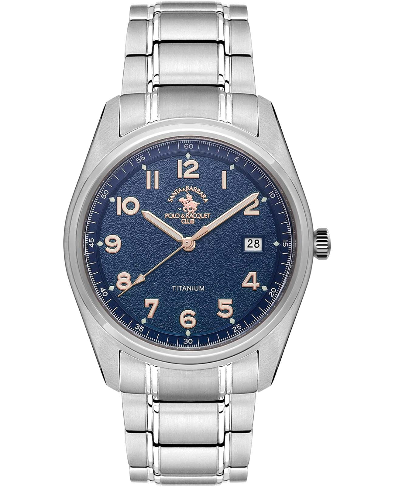 Мужские кварцевые Santa Barbara Polo & Racquet Club SB.4.1010-3 — воплощение элегантности и технического совершенства. Корпус из титана серебристого цвета, диаметром 40 мм, что делает их устойчивыми к внешним воздействиям и придает благородный вид. Стрелки и метки с люминесцентным покрытиемЛюминесцентное покрытиеПозволяет считывать показания времени в темноте. Производители наносят на стрелки, часовые индексы, безель или поверхность циферблата светонакопительный состав, дающий холодное свечение., обеспечивающим хорошую читаемость в темноте. Циферблат защищён минеральным стекломМинеральное стеклоМинеральное стекло представляет собой искусственно выращенный минерал кварца. Такое стекло отличается особой устойчивостью к повреждениям и царапинам. Уступает по некоторым качествам сапфировому стеклу. устойчивое к царапинам и механическим повреждениям. Окошко даты находится в положении 3 часа. Браслет из титана на раскладной застёжкеРаскладная застёжкаТакой тип застёжки используется только на браслетах из металла. Она никогда не раскрывается полностью, происходит разделение на 2 и более частей. Раскладывающая застёжка снизит вероятность потери часов к минимуму. обеспечивает комфортное и безопасное ношение. Водонепроницаемость 50 метров позволит защитить корпус от случайных брызг или капель дождя. Идеальный выбор для тех, кто ценит элегантный дизайн и качество.