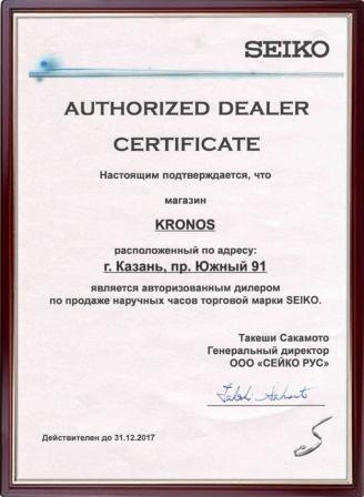 Официальный магазин Магазин KronosTime является официальным дилером Seiko в России. Это означает, что товар только оригинальный, на него действует официальная гарантия, дающая право обслуживать часы в официальных сервисных центрах.