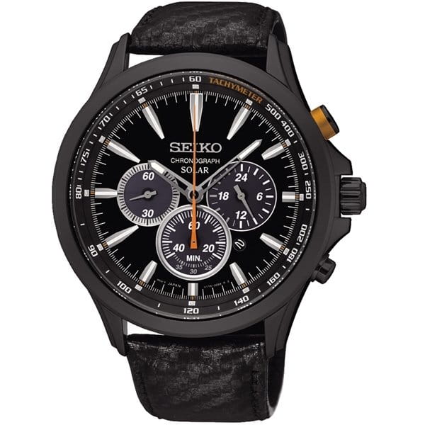 Успешные люди, желающие идти в ногу со временем, выбирают инновационные и надежные часы марки Seiko. Механизм работает от солнечной батареи, калибр V175. Корпус выполнен из нержавеющей стали с антикоррозийными свойствами с PVD покрытием. Черный циферблат с контрастными элементами дизайна. Минеральное стекло повышенной прочности Hardlex, устойчиво к царапинам. Часы удерживаются ремешком из натуральной кожи черного цвета. Водонепрницаемость 100м. Часы оснащены хронографом.