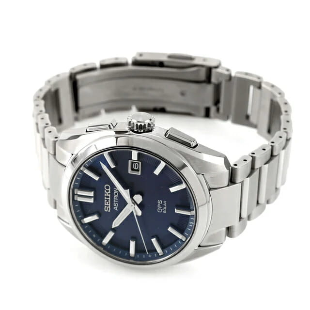 Мужские кварцевые часы Seiko — это высокотехнологичный аксессуар с солнечным питанием и GPS-синхронизацией. Корпус диаметром 41 мм и толщиной 13 мм выполнен из лёгкого титана. Циферблат синего цвета оформлен индексами и стрелками. Окошко даты расположено в положении 3 часов. Стрелки и метки с люминесцентным покрытиемЛюминесцентное покрытиеПозволяет считывать показания времени в темноте. Производители наносят на стрелки, часовые индексы, безель или поверхность циферблата светонакопительный состав, дающий холодное свечение., обеспечивающим хорошую читаемость в темноте. Циферблат защищён сапфировым стекломСапфировое стеклоПрочный и надёжный материал из кристалла сапфира синтетического происхождения, характеризующийся особой твёрдостью и устойчивостью к царапинам и повреждениям.. Механизм — кварцевый с технологией Tough SolarTough SolarТехнология основана на подзарядке аккумулятора от источника солнечного света, специальная панель улавливает солнечные лучи и преобразует их в энергию для работы часов. Достаточно пары минут нахождения на солнце для функционирования часов в течении суток., обеспечивающей автономную работу до 6 месяцев при полной зарядке (до 2 лет в режиме энергосбережения). Часы поддерживают автоматическую коррекцию времени и часового пояса через GPS, имеют вечный календарьВечный календарьКлассическое часовое усложнение, представляющее собой календарь, рассчитанный на несколько лет вперёд (стандартно – до 2099 года). Определяет текущую дату, день недели, месяц. (до 28 февраля 2100 года) и функцию авиарежима. Часы оснащены титановым браслетом с раскладной застёжкойРаскладная застёжкаТакой тип застёжки используется только на браслетах из металла. Она никогда не раскрывается полностью, происходит разделение на 2 и более частей. Раскладывающая застёжка снизит вероятность потери часов к минимуму.. Водонепроницаемость 100 м позволяет использовать часы для плавания и повседневного ношения. Идеальный выбор для тех, кто ценит точность, инновации и надёжность.