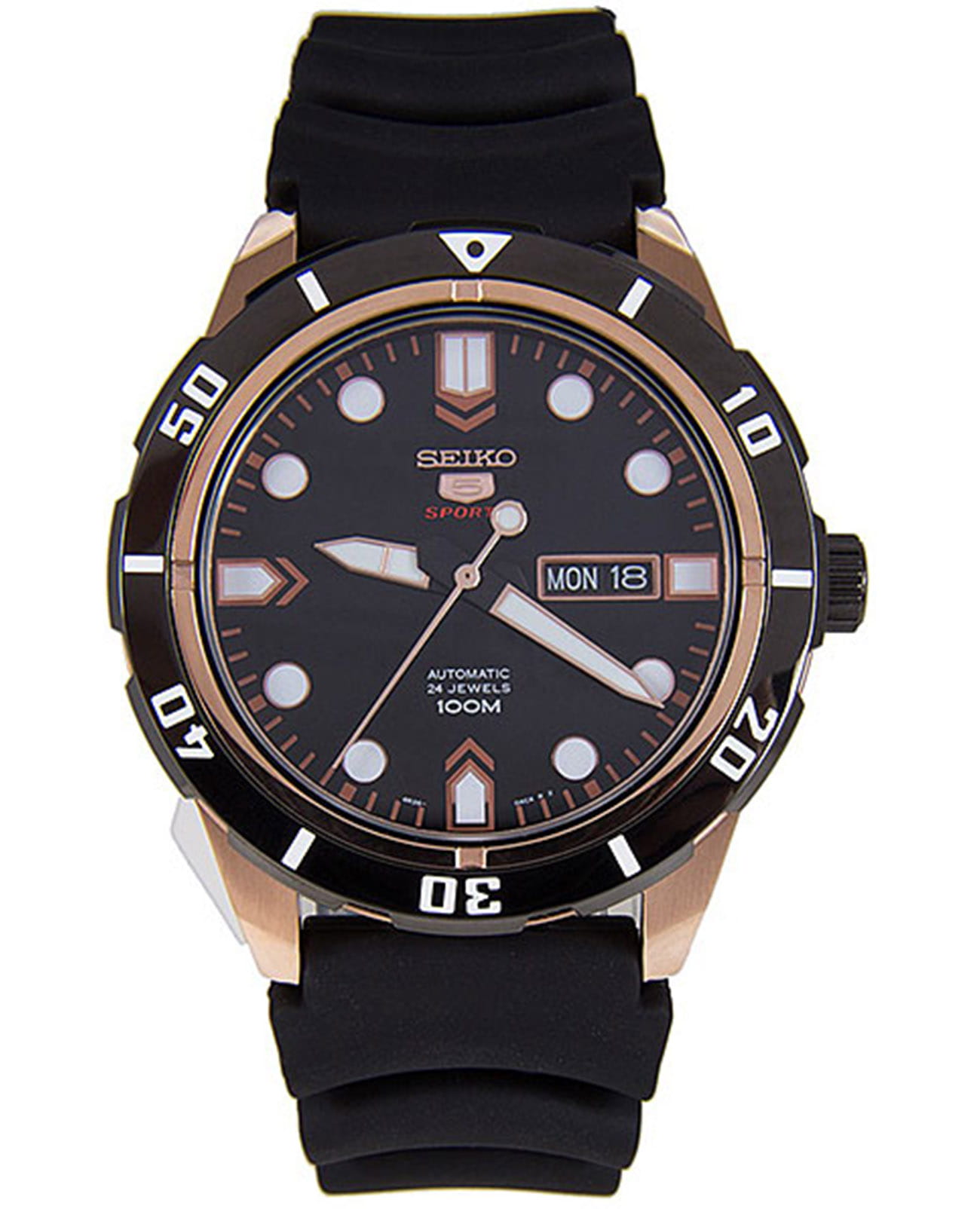 Мужские японские часы Seiko 5 Sports SRP680K1S, механический механизм (автоматический калибр) с высокой точностью. Класс водозащиты: 100 метров, позволит плавать, нырять и заниматься другими водными видами спорта. Корпус выполнен из нержавеющей стали 316L с PVD-покрытиемPVDУльтратонкое покрытие наносится в технике вакуумного напыления, сочетает в себе нитрид титана особой прочности со слоем золота или оксида хрома. Несёт в себе декоративную или защитную функцию. цвета золота. Запас хода 41 часы, частота колебаний баланса 21 600 пк/час, 24 камня. Вращающийся БезельБезельВнешний ободок, закрепляющий стекло. В спортивных часах так называется поворотное кольцо с делениями на циферблате, выполняет роль таймера – замеряет отрезки времени на шкале. Неподвижный безель – элемент декора. Однонаправленно вращающийся безель на дайверских часах позволяет фиксировать моменты погружения и выныривания на поверхность. с черным PVD-покрытиемPVDУльтратонкое покрытие наносится в технике вакуумного напыления, сочетает в себе нитрид титана особой прочности со слоем золота или оксида хрома. Несёт в себе декоративную или защитную функцию. и контрастной разметкой вращается щелчками только в направлении «против часовой стрелки». Закаленное минеральное стеклоМинеральное стеклоМинеральное стекло представляет собой искусственно выращенный минерал кварца. Такое стекло отличается особой устойчивостью к повреждениям и царапинам. Уступает по некоторым качествам сапфировому стеклу. Hardlex Glass совмещает стойкостью к появлению царапин и устойчивость к ударному воздействию и перепадам давления. Задняя крышка с прозрачным окном имеет винтовое соединение с корпусом. Стрелки и метки с люминесцентным покрытиемЛюминесцентное покрытиеПозволяет считывать показания времени в темноте. Производители наносят на стрелки, часовые индексы, безель или поверхность циферблата светонакопительный состав, дающий холодное свечение.. Резиновый ремешок на стандартной застёжке. Окошко даты находится в положении 3 часа.