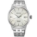 Мужские наручные часы Seiko SRPG23J1 из коллекции Presage Cocktail Time сочетают в себе классический дизайн и надежность современных технологий. Модель обладает круглым корпусом диаметром 40,5 мм, изготовленным из нержавеющей стали, что обеспечивает высокую устойчивость к внешним воздействиям . Браслет также выполнен из нержавеющей стали с раскладной застежкойРаскладной замокДанный вариант застежки используется только на часах с металлическим браслетом. Отличительная особенность такого крепления в том, что длина браслета становится универсальной и вы можете самостоятельно отрегулировать нужный вам размер – застежка просто двигается по браслету часов., гарантирующей комфортное ношение . Циферблат серебристого цвета с текстурой "Женевской дорожки" оснащен изящными стрелками и метками, которые придают часам элегантный вид . Для защиты используется минеральное стеклоМинеральное стеклоМинеральное стекло представляет собой искусственно выращенный минерал кварца. Такое стекло отличается особой устойчивостью к повреждениям и царапинам. Уступает по некоторым качествам сапфировому стеклу. Hardlex Crystal, обеспечивающее прочную защиту от царапин . Часы работают на автоматическом механизме с калибром 4R35, который включает 23 камня и обладает запасом хода до 41 часа . Модель оснащена функциями отображения часов, минут и секунд, а также имеет водонепроницаемость до 50 метров, что позволяет защитить корпус от случайных брызг и кратковременного контакта с водой . Вдохновленные культурой японских коктейлей, эти часы демонстрируют уникальный стиль и внимание к деталям.