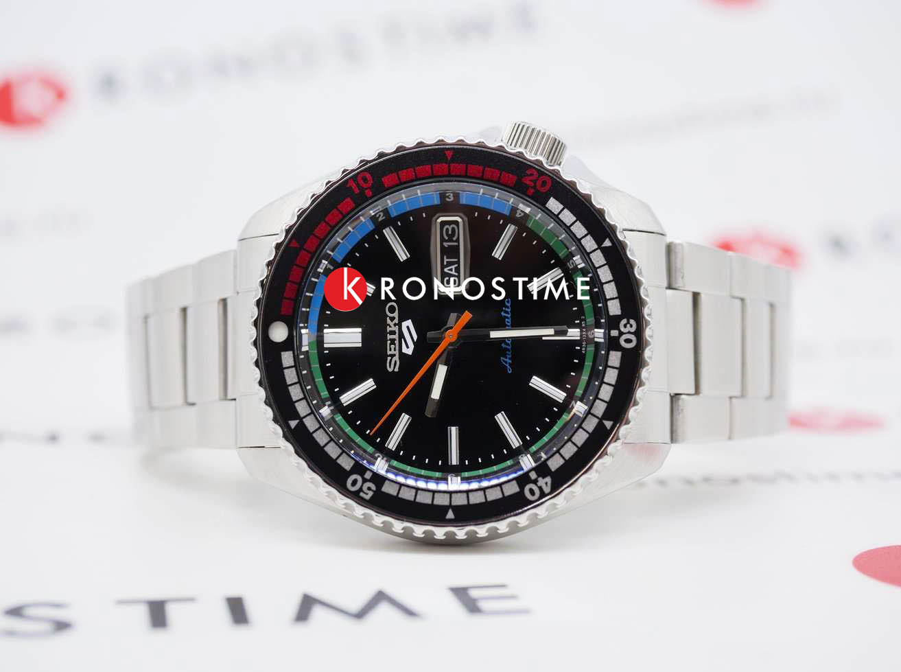 Мужские японские часы с запасом хода 41 час Seiko 5 Sports SRPK13K1 с минеральным стекломМинеральное стеклоМинеральное стекло представляет собой искусственно выращенный минерал кварца. Такое стекло отличается особой устойчивостью к повреждениям и царапинам. Уступает по некоторым качествам сапфировому стеклу. повышенной прочности Hardlex, автоматический механизм с высокой точностью. Класс водозащиты: 100 метров, позволит плавать, нырять и заниматься другими водными видами спорта. Корпус и браслет часов изготовлены из нержавеющей стали. Стальной браслет на раскладной застёжкеРаскладная застёжкаТакой тип застёжки используется только на браслетах из металла. Она никогда не раскрывается полностью, происходит разделение на 2 и более частей. Раскладывающая застёжка снизит вероятность потери часов к минимуму.. Окошко даты находится в положении 3 часа. Стрелки и метки с люминесцентным покрытиемЛюминесцентное покрытиеПозволяет считывать показания времени в темноте. Производители наносят на стрелки, часовые индексы, безель или поверхность циферблата светонакопительный состав, дающий холодное свечение.. Поворотный безельБезельВнешний ободок, закрепляющий стекло. В спортивных часах так называется поворотное кольцо с делениями на циферблате, выполняет роль таймера – замеряет отрезки времени на шкале. Неподвижный безель – элемент декора. Однонаправленно вращающийся безель на дайверских часах позволяет фиксировать моменты погружения и выныривания на поверхность. с PVD-покрытиемPVDУльтратонкое покрытие наносится в технике вакуумного напыления, сочетает в себе нитрид титана особой прочности со слоем золота или оксида хрома. Несёт в себе декоративную или защитную функцию..
