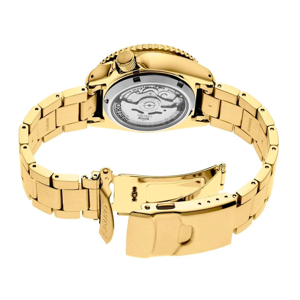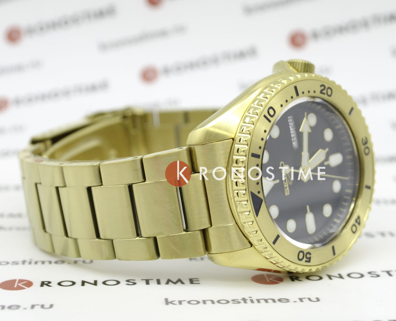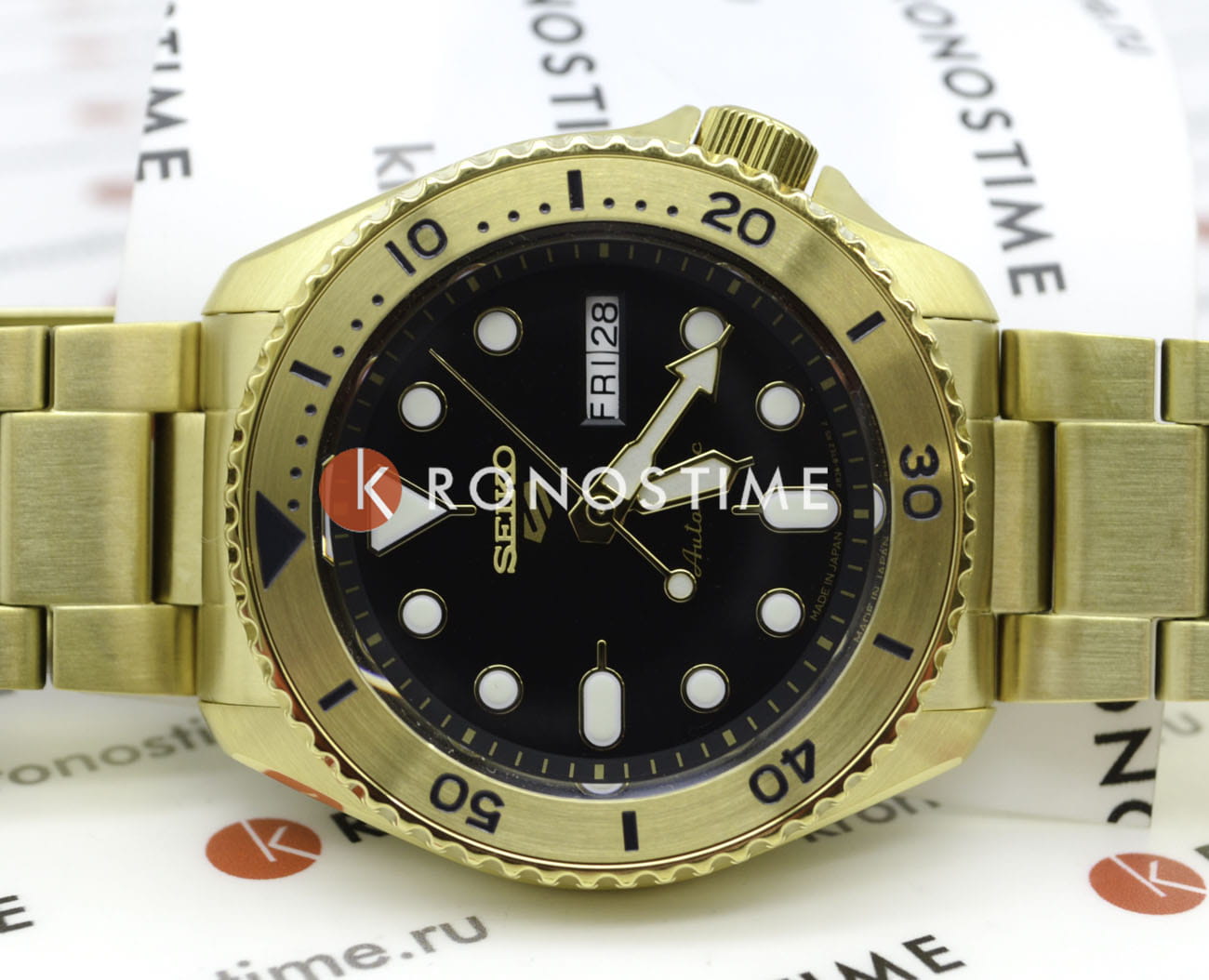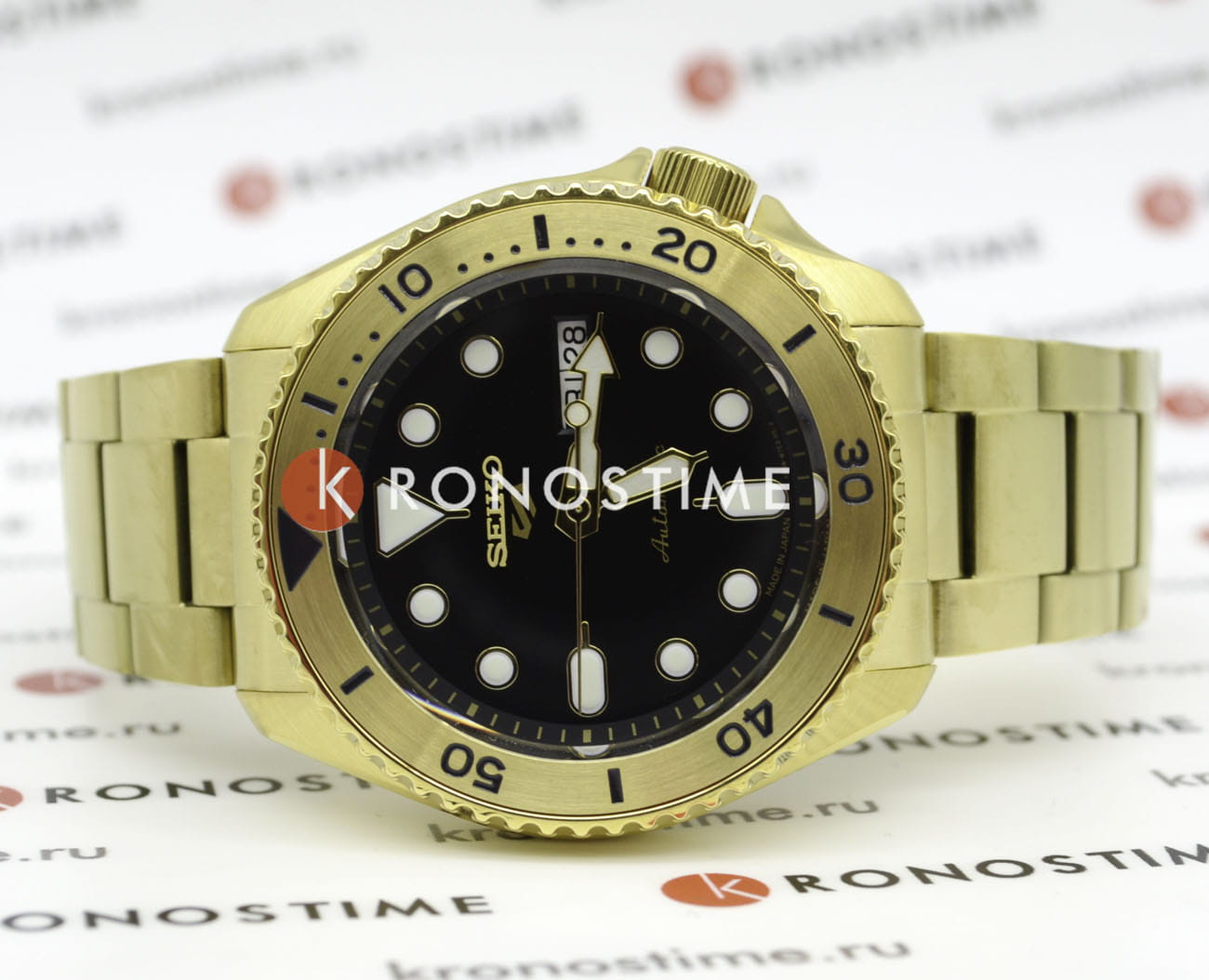 Часы Seiko 5 Sports SRPK18 представляют собой элегантное сочетание классического дизайна и современных технологий. Корпус диаметром 42,5 мм выполнен из нержавеющей стали с PVD-покрытиемPVDУльтратонкое покрытие наносится в технике вакуумного напыления, сочетает в себе нитрид титана особой прочности со слоем золота или оксида хрома. Несёт в себе декоративную или защитную функцию. золотого цвета, придающим часам утончённый вид. Чёрный циферблат защищён минеральным стекломМинеральное стеклоМинеральное стекло представляет собой искусственно выращенный минерал кварца. Такое стекло отличается особой устойчивостью к повреждениям и царапинам. Уступает по некоторым качествам сапфировому стеклу. с повышенной прочностью. ​​