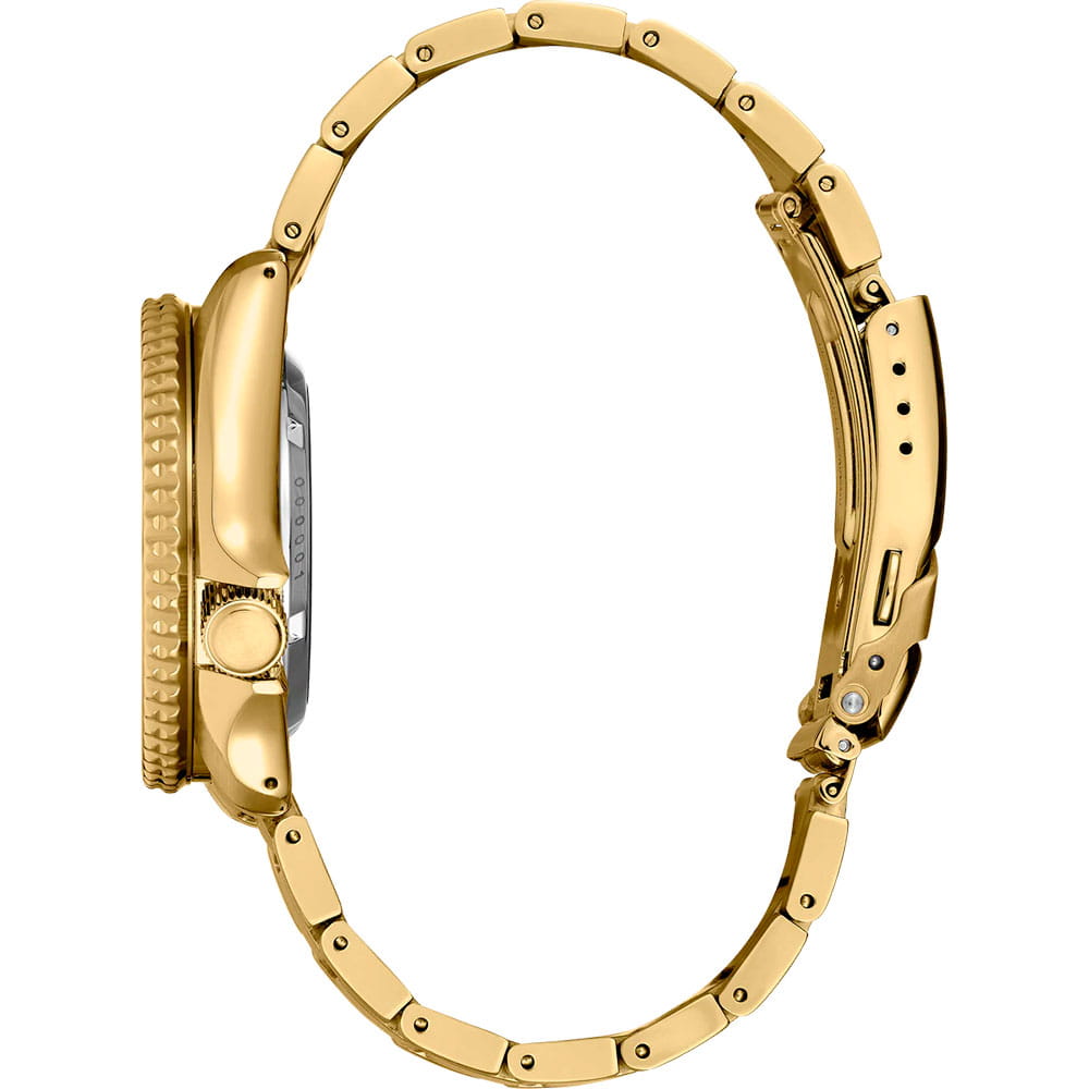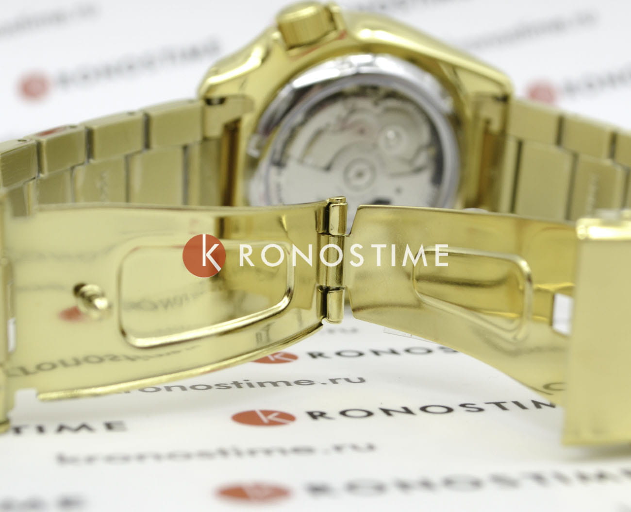 Водозащита 100 метров (10 бар) позволяет использовать часы для плавания и других водных видов спорта. Стальной браслет с PVD-покрытиемPVDУльтратонкое покрытие наносится в технике вакуумного напыления, сочетает в себе нитрид титана особой прочности со слоем золота или оксида хрома. Несёт в себе декоративную или защитную функцию. золотого цвета и раскладной застёжкойРаскладная застёжкаТакой тип застёжки используется только на браслетах из металла. Она никогда не раскрывается полностью, происходит разделение на 2 и более частей. Раскладывающая застёжка снизит вероятность потери часов к минимуму. обеспечивает комфортное ношение и надёжную фиксацию на запястье. ​​