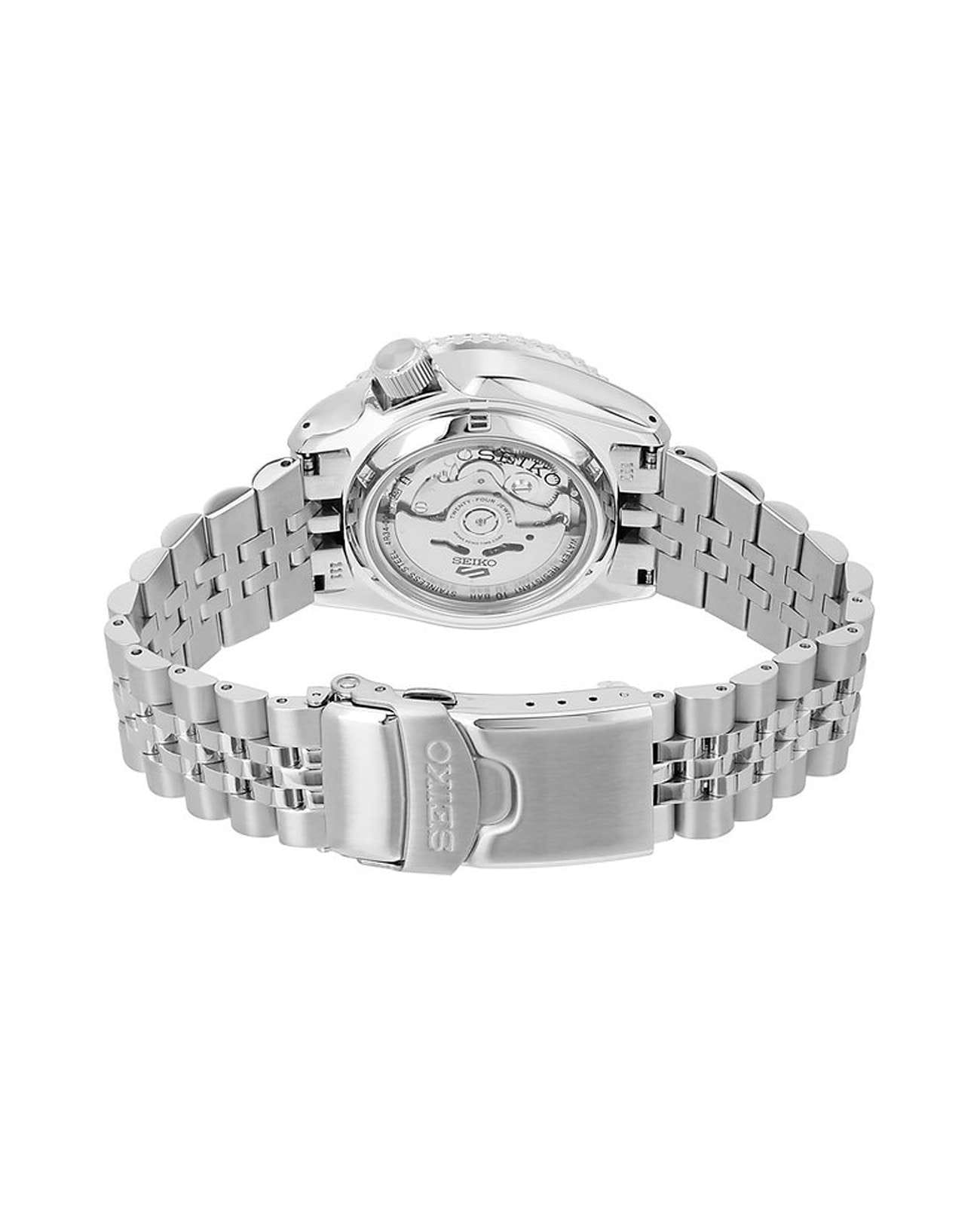 Мужские наручные часы Seiko SSK031K1 из коллекции 5 Sports сочетают в себе стильный дизайн и надежность современных технологий. Модель обладает круглым корпусом диаметром 42,5 мм, изготовленным из нержавеющей стали, что обеспечивает высокую устойчивость к внешним воздействиям. БезельБезельВнешний ободок, закрепляющий стекло. В спортивных часах так называется поворотное кольцо с делениями на циферблате, выполняет роль таймера – замеряет отрезки времени на шкале. Неподвижный безель – элемент декора. Однонаправленно вращающийся безель на дайверских часах позволяет фиксировать моменты погружения и выныривания на поверхность. с PVD-покрытиемPVDУльтратонкое покрытие наносится в технике вакуумного напыления, сочетает в себе нитрид титана особой прочности со слоем золота или оксида хрома. Несёт в себе декоративную или защитную функцию.. Для защиты циферблата используется минеральное стеклоМинеральное стеклоМинеральное стекло представляет собой искусственно выращенный минерал кварца. Такое стекло отличается особой устойчивостью к повреждениям и царапинам. Уступает по некоторым качествам сапфировому стеклу., которое эффективно противостоит царапинам и механическим повреждениям. Часы оснащены автоматическим механизмом с калибром 4R34, поддерживающим автоподзавод и имеющим запас хода около 41 часа. Водонепроницаемость модели достигает 10 атмосфер (100 метров), что позволяет использовать их во время плавания и других водных видов спорта. Стальной браслет на раскладной застёжкеРаскладная застёжкаТакой тип застёжки используется только на браслетах из металла. Она никогда не раскрывается полностью, происходит разделение на 2 и более частей. Раскладывающая застёжка снизит вероятность потери часов к минимуму.. Циферблат оснащен функцией индикации даты, центральной секундной стрелкой и люминесцентным покрытиемЛюминесцентное покрытиеПозволяет считывать показания времени в темноте. Производители наносят на стрелки, часовые индексы, безель или поверхность циферблата светонакопительный состав, дающий холодное свечение. стрелок и маркеров для удобства использования в темное время суток.