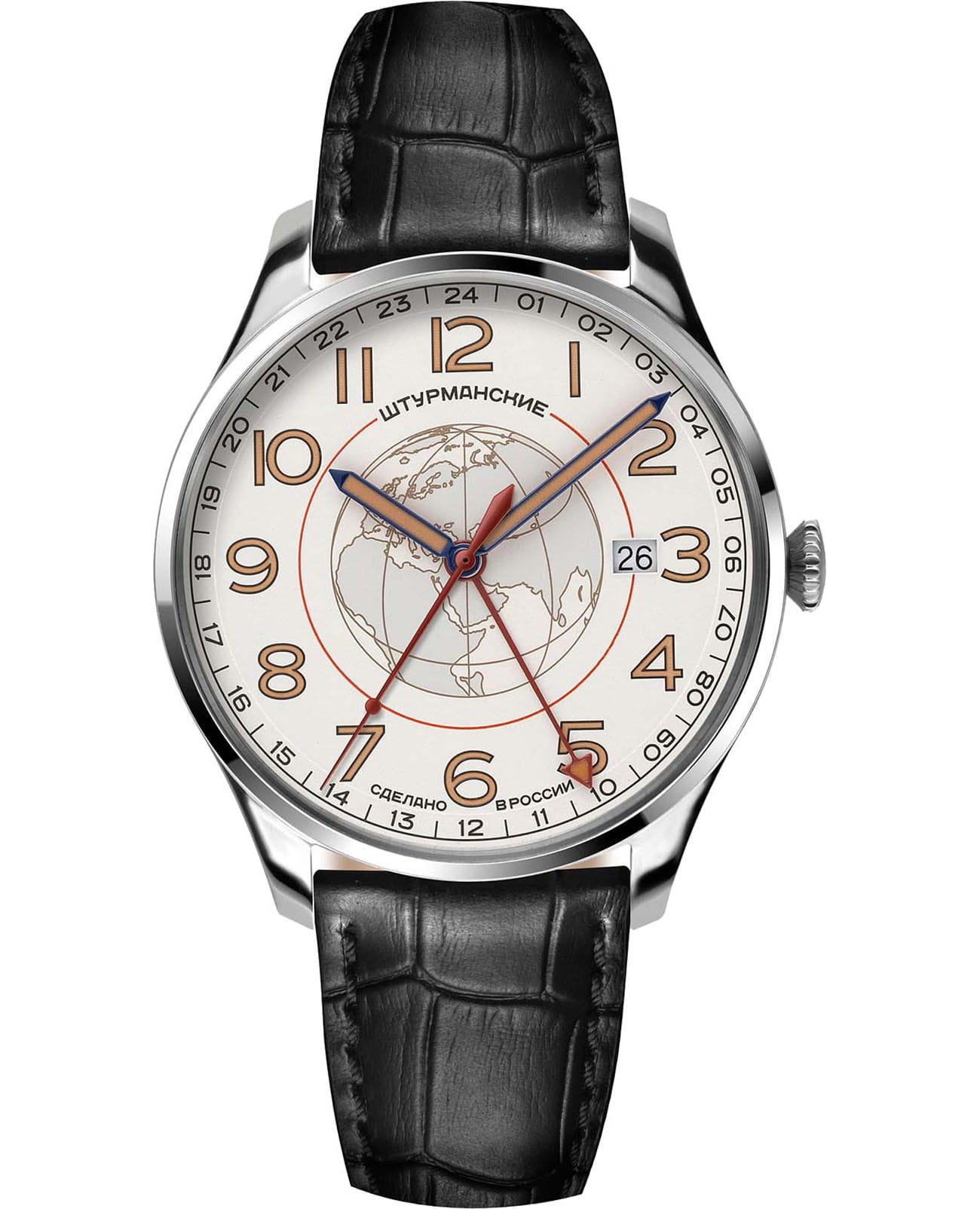 Штурманские мужские российские кварцевые часы с минеральным стекломМинеральное стеклоМинеральное стекло представляет собой искусственно выращенный минерал кварца. Такое стекло отличается особой устойчивостью к повреждениям и царапинам. Уступает по некоторым качествам сапфировому стеклу. кварцевый механизм с высокой точностью. Класс водозащиты: 50 метров, позволит защитить корпус от случайных брызг или капель дождя. Корпус часов изготовлен из стали. Кожаный ремешок на стандартной застёжке. Стрелки и метки с люминесцентным покрытиемЛюминесцентное покрытиеПозволяет считывать показания времени в темноте. Производители наносят на стрелки, часовые индексы, безель или поверхность циферблата светонакопительный состав, дающий холодное свечение.. Окошко даты находится в положении 3 часа.